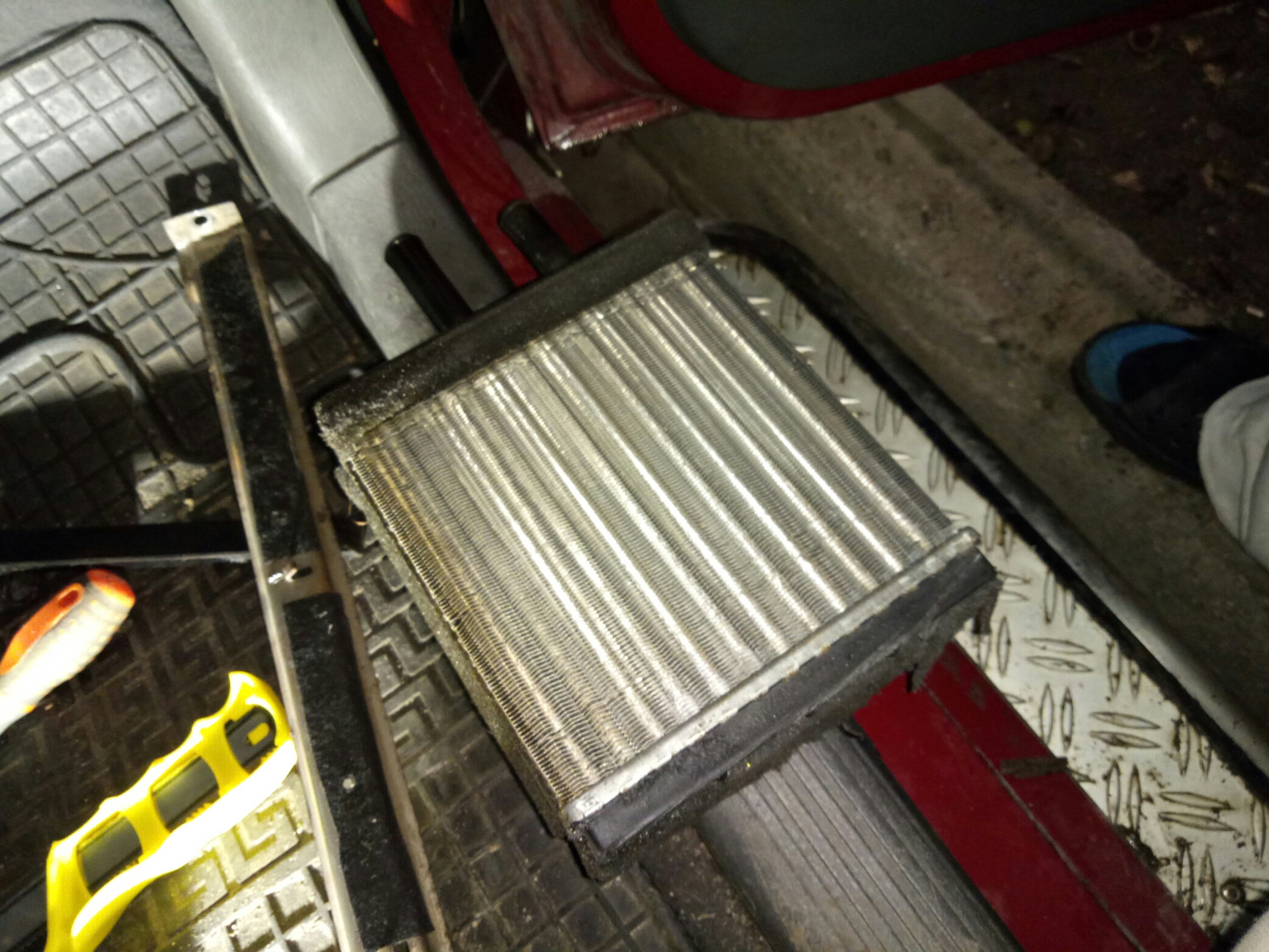 Заказал радиатор, дождался пока появится свободный вечер и по стопам уже многих бортовых журналов отпилил ножовочным полотном часть корпуса печки закрывающую радиатор.