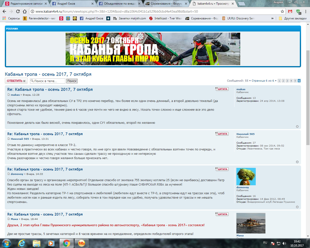 Трассы у Кабанов… странные. Я весенний этап на квадре ехала. Так мы технику местами больше на руках носили, чем она нас возила. А где-то наоборот — полнейший лайк, хотя поставь ты точку на пять метров в сторону, и будет интересно. Организация при этом понравилась, призы дали хорошие.