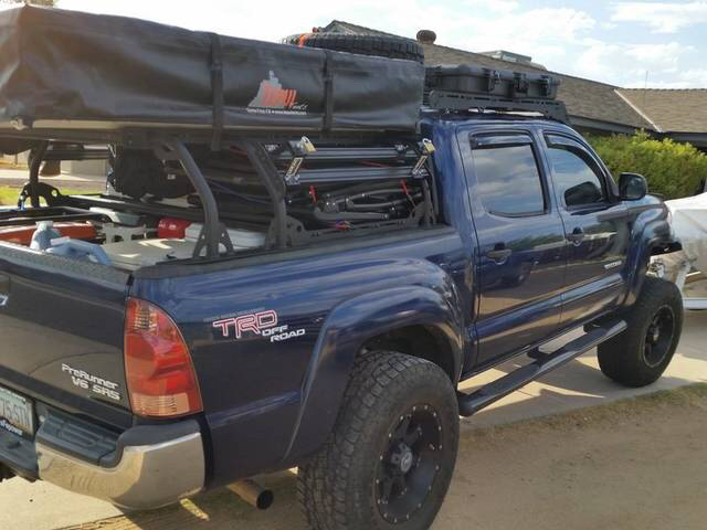 меня в картинках с палаткой смущает вот что. грузовой каркас может принимать на себя вес 300 кг в статике и черт знает сколько в динамике, когда со всем этим барахлом на себе поедет. это все в конструкциях с картинок ложится на борта. в то время как обычный кунг весит максимум 100 кг, вес распределен равномернее, и то слышал жалобы на то, что борта рвет. имхо если такое и делать (я вообще мечтаю о железной будке с интегрированным каркасом), то с опорами на дно кузова.