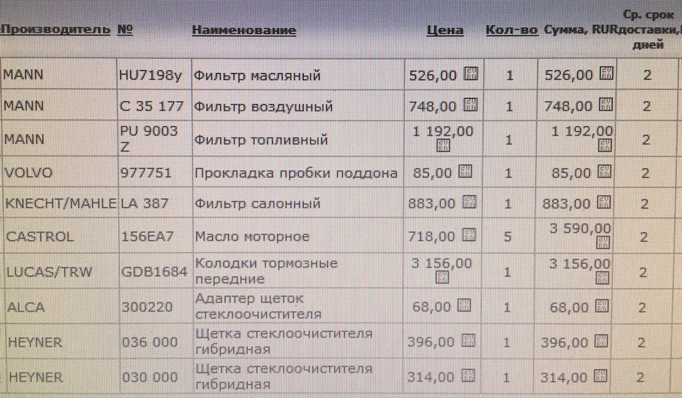 Скоро нам исполнится 2годика, а значит и плановое ТО не за горами, хоть и пробег за этот год вышел всего 10тыс. Решил расходниками сам закупиться и получилась такая вот картинка: