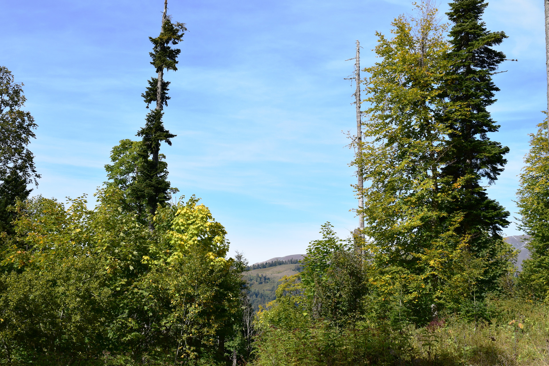 После прогулки по лугам, двинулись мы вниз, уже спустившись, увидели вбок какую то убитую дорогу, в таких местах точно людно не будет, нырнули мы туда и не спеша поехали, заехали в тупик, как оказалось, это была когда то делянка, лес видно валили, в месте ничего особенного, но по своему интересно, аппетит мы вверху нагуляли, особенно я, от души побродил по холмам, остановились мы тут хлебнуть чая