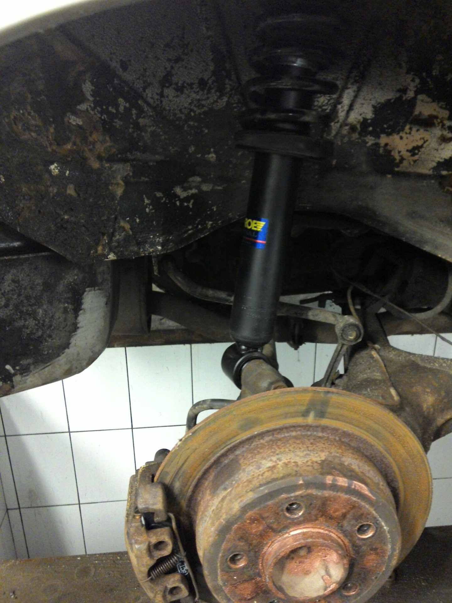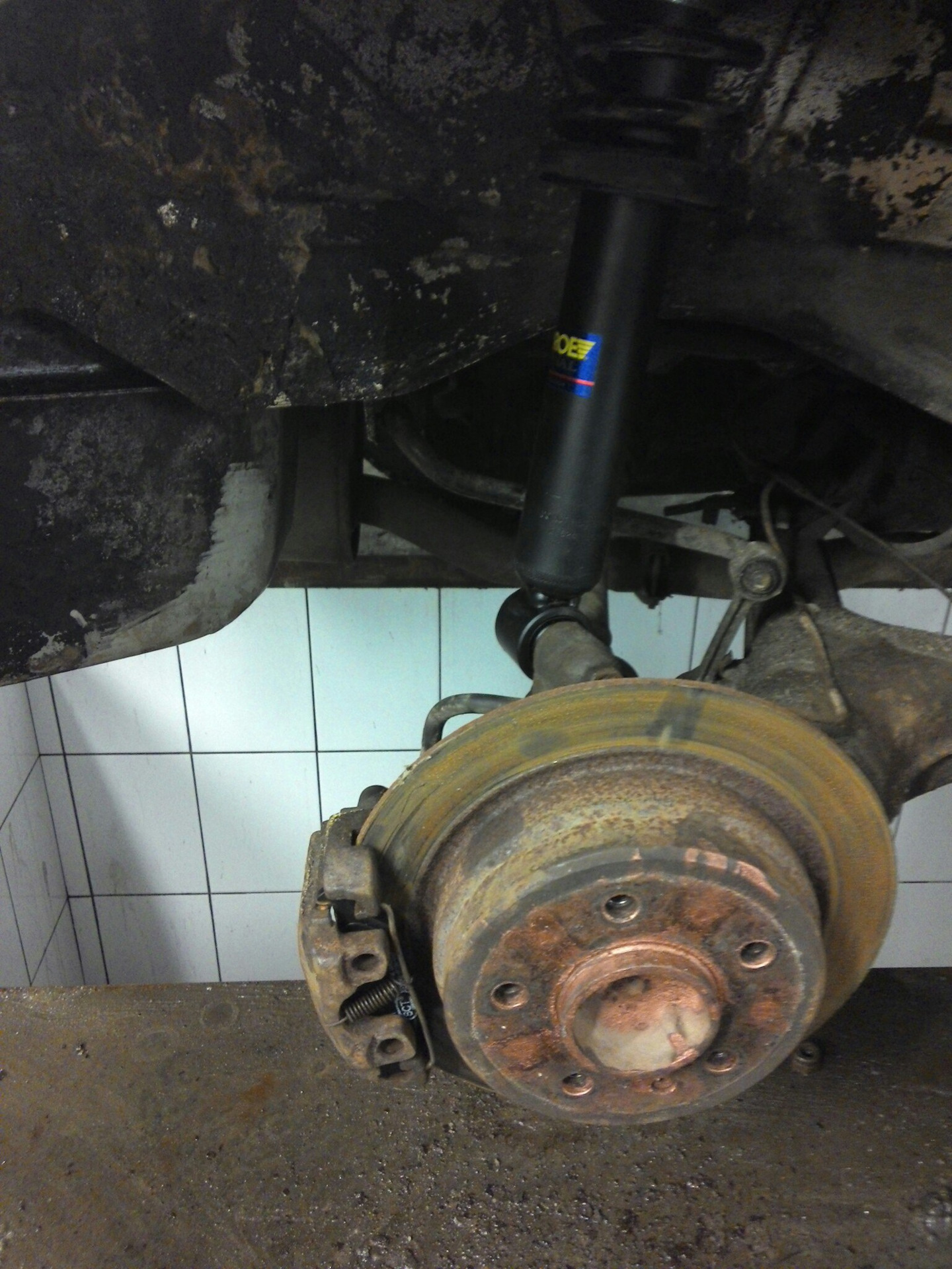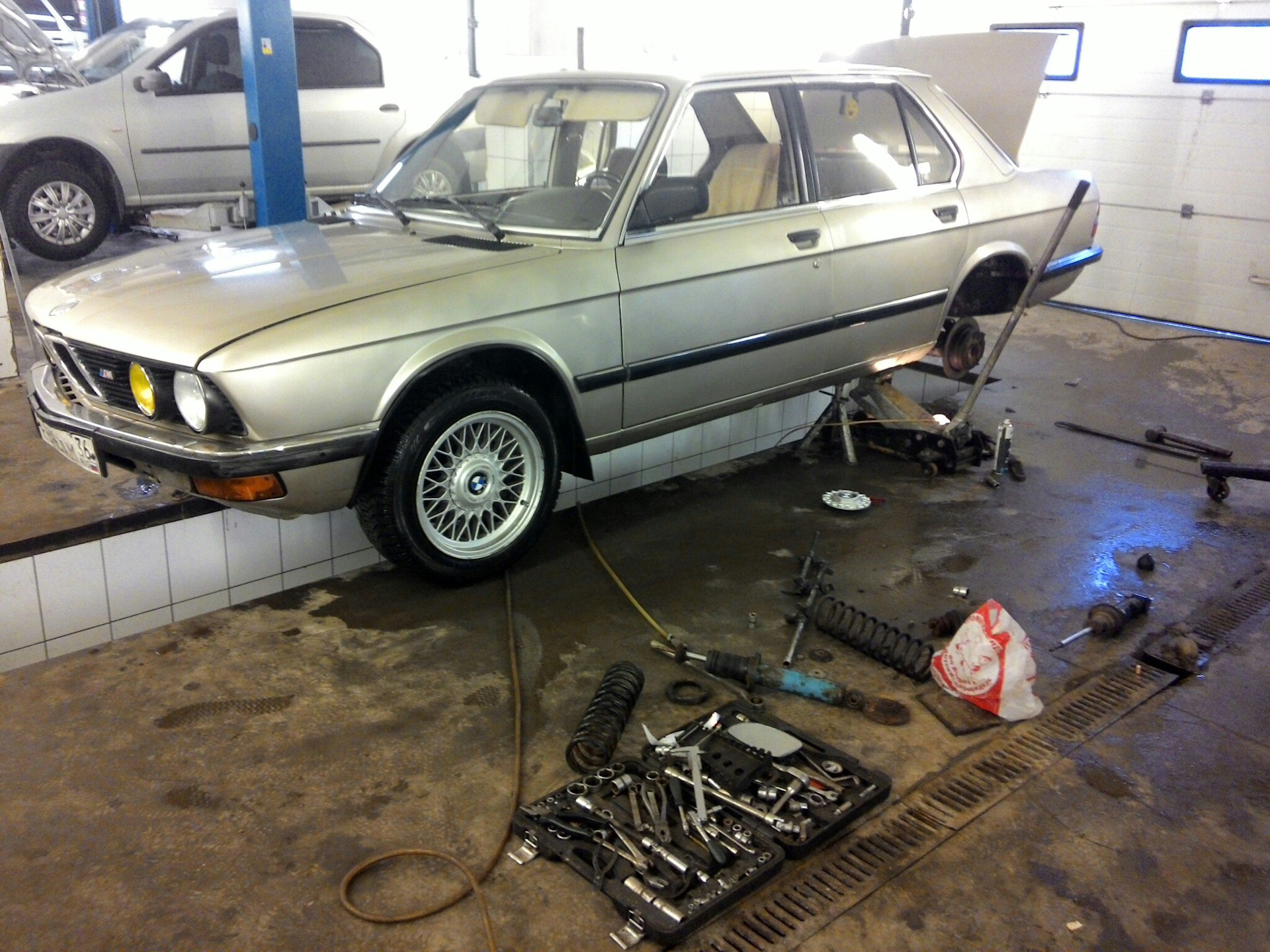 Кстати у меня был уже проведен некий тюнинг — есть на е28 и на е34 слабое место в креплении амортизатора к рычагу(кулаку) Это болт который любит обламываться, Так вот мои уже были просверлены прошлыми владельцами и вставлены сквозные болты через кулак( единственный минус, для замены амортизаторов нужно снимать задние суппорта) в остальном только плюсы.