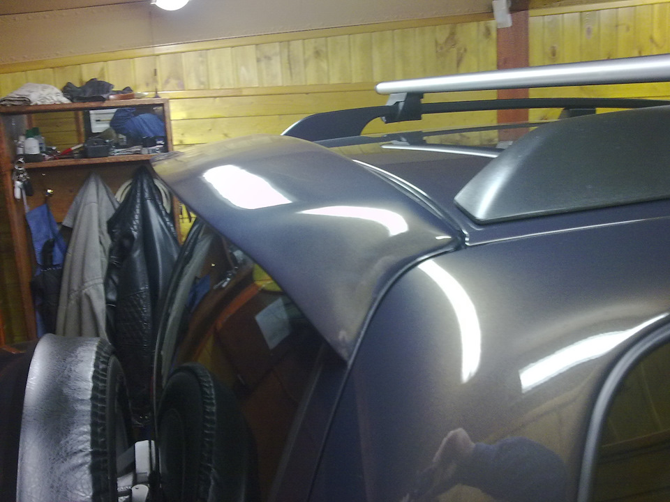 Посмотрев как другие ставят, захотелось тоже ), нива конечно не взлетит, но внешний вид наамного лучше с ним . Заказал в нете за 1800 + сразу там же покраска 1000 р . Цвет графит 2 у меня, меняется на солнышке, переживал, что не попадут с покраской, сказали, что покрасят и вышлют фото, но на фото разве разберёшь . В итоге всё нормально, цвет один в один . Никаких закладных внутри нет, сказали, что или на саморезы или приклеивать . Если на один скотч 3м, вроде как-то стрёмно, не улетел бы, да и дырявить машину ну очень не хотелось . В итоге решил проклеить середину скотчем, края прозрачным стекольным герметиком, приложил по месту, зафиксировал бумажным скотчем, стёр лишний клей, как подсохло просверлил в двух местах и прикрутил по саморезику, предварительно прыснув мовилем и подложив под саморезы резиновые шайбочки .
