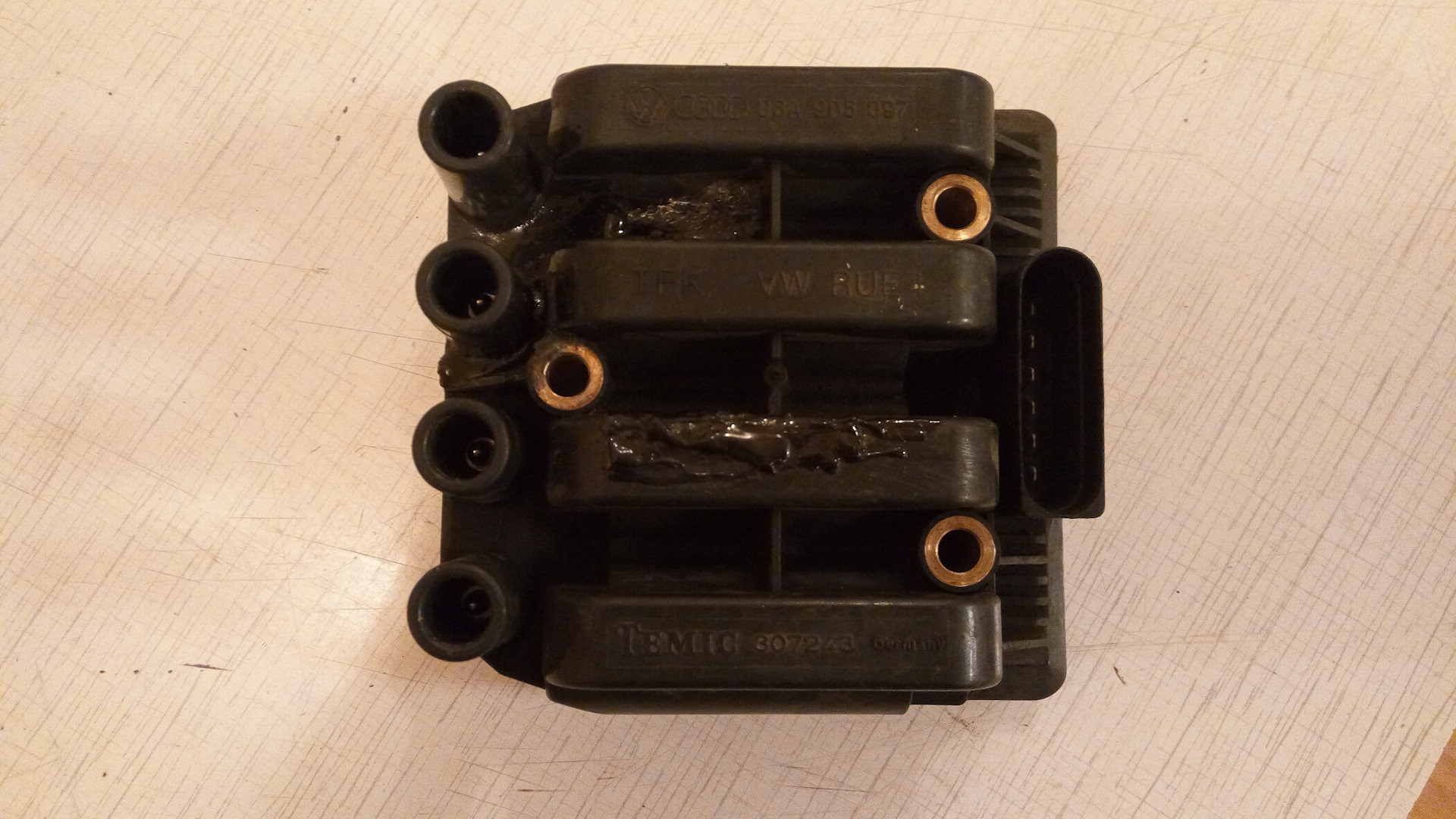 Всем привет. И так, после того, как я поменял все свечи, поставил оригинал NGK PZFR5D-11, и поменял ВВ провода BREMY, настало время поменять и катушку зажигания. На диагностике сказали пропуск зажигания. Катушку взял фирмы HUGO, заказал на емех, дошло до Армении за 3 дня. Сняли старую катушку, кстати стоял родной с завода Temic Eldor, он был в трещинах, а местами был залит чем то вроде эбосидной смолы. На прогретом двигателе, когда останавливился под светофором, двигатель как бы троил, даже слышался щелчок искры… Поменчли катушку, немного погонял машинку. Двигатель пел! Никаких троений, щелчков и тому подобного не было, даже динамика машины ощутимо изменилась, машина стала намного резвей.