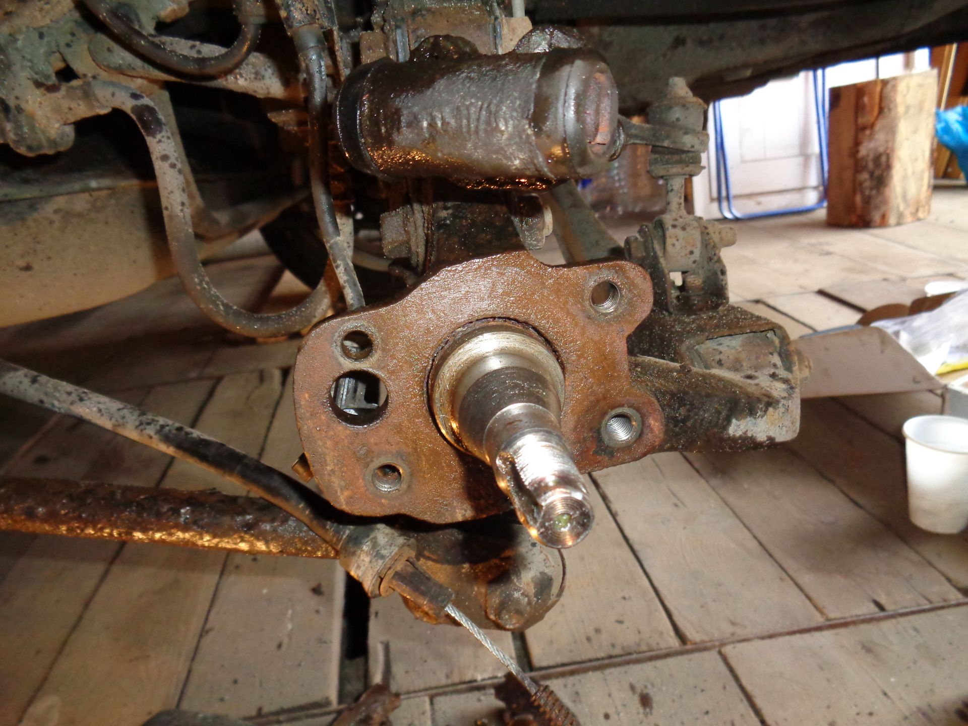 На правой стороне щиток оказался в хорошем состоянии. А вот сальник подшипника развалился, пружинка сальника выскочила отдельно.