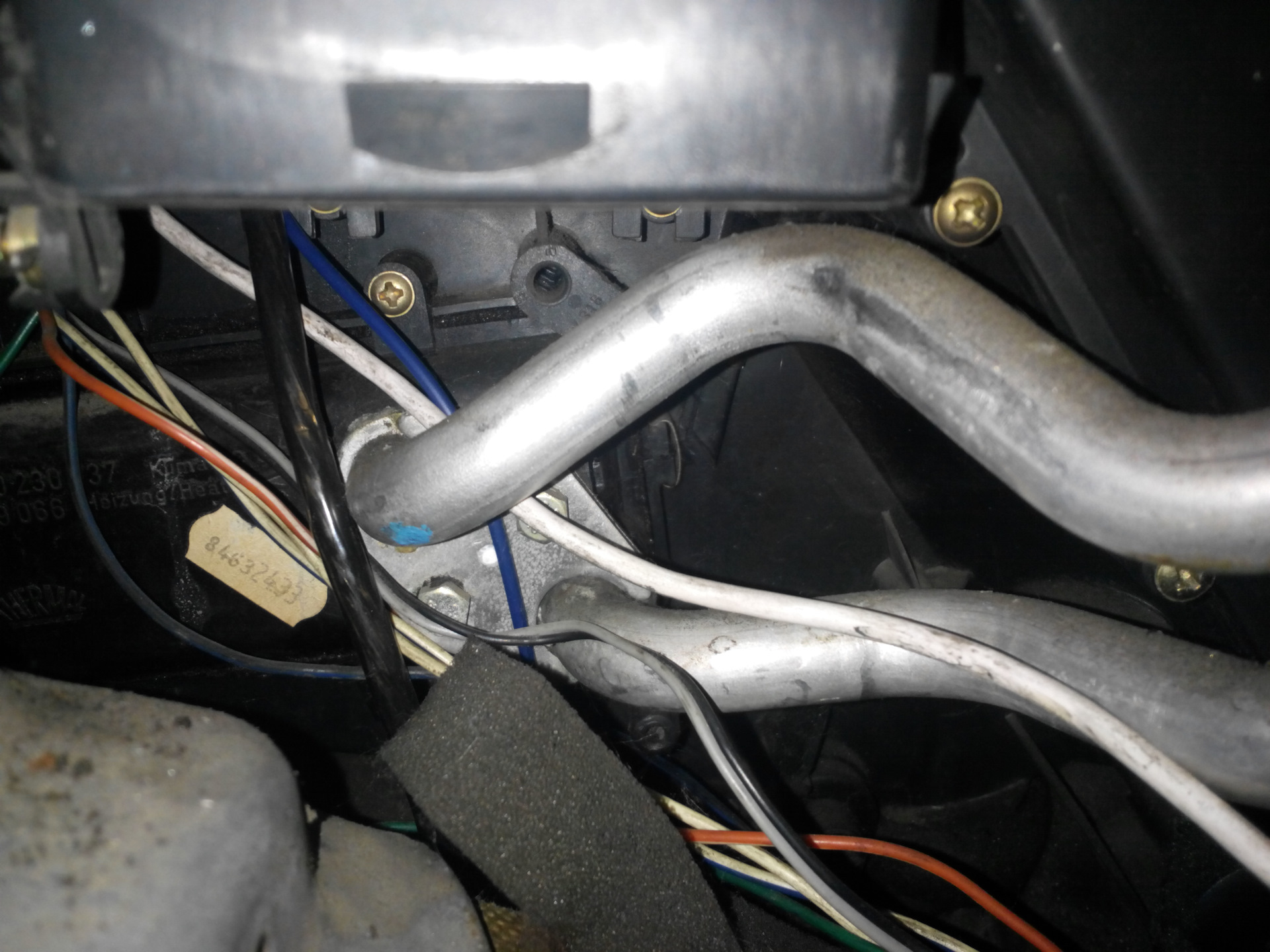 Фото радиатора печки при снятом бардачке: