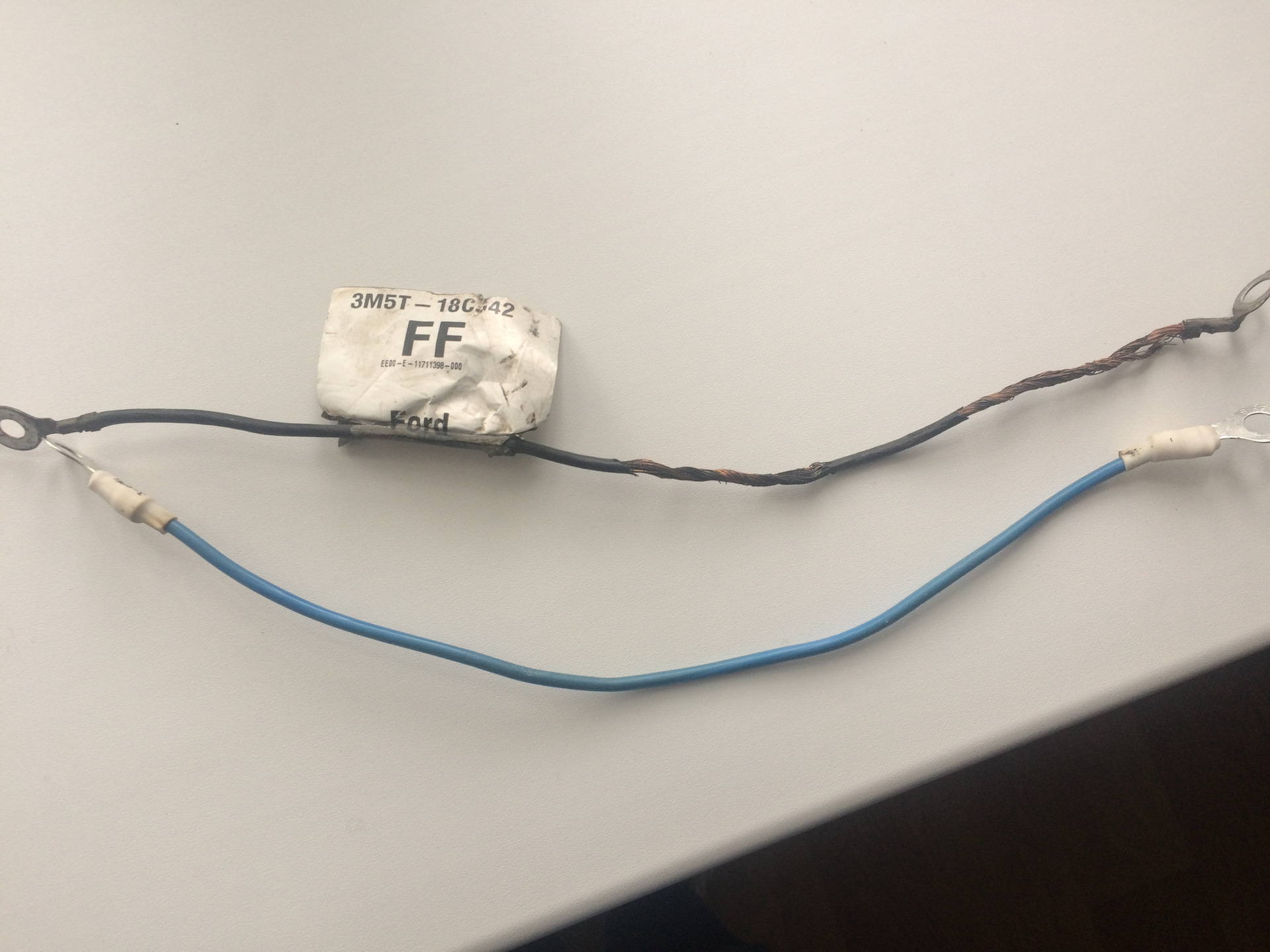 Для начала решаем вопрос с проводкой. Нашли — оплавился провод (3M5T-18C942). Находится под коробкой для аккума и воздуханом. Стоимость около тысячи рублей + 100 лет ждать доставку. За 15 сантиметров и 2 клеммы — 800 рублей! :) Ничего сложного, делаем этот провод сами и заменяем. Последствия ликвидировали, ищем причину оплавления. Причина рядом — минус от аккума не был закреплен на коробку. Просто болтался, видимо болт ослаб и/или не прикрутили в какой то из поездок в сервис. И весь ток пошел через этот тонкий проводок.
