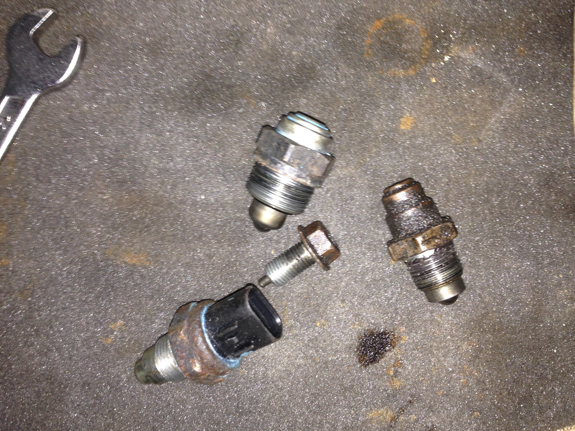 " 6) — Выкручиваем 3 болта + 1 датчик включения заднего хода. (На фото пометил). Из под самого нижнего выльется немного масла — подставьте чего нибудь."