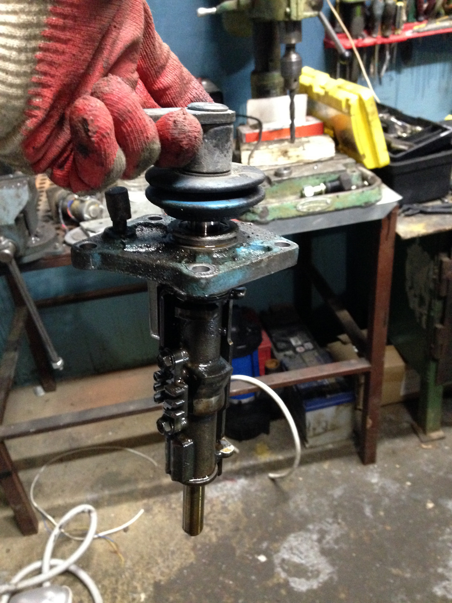 10) Сбоку на штоке будет шплинт — выбиваем его. Я испольовал сверло подходящего диаметра. И вынимаем шток с рычагом наверх. Снимаем пыльник и видим под ним сальник. Отверткой поддеваем его и вынимаем.