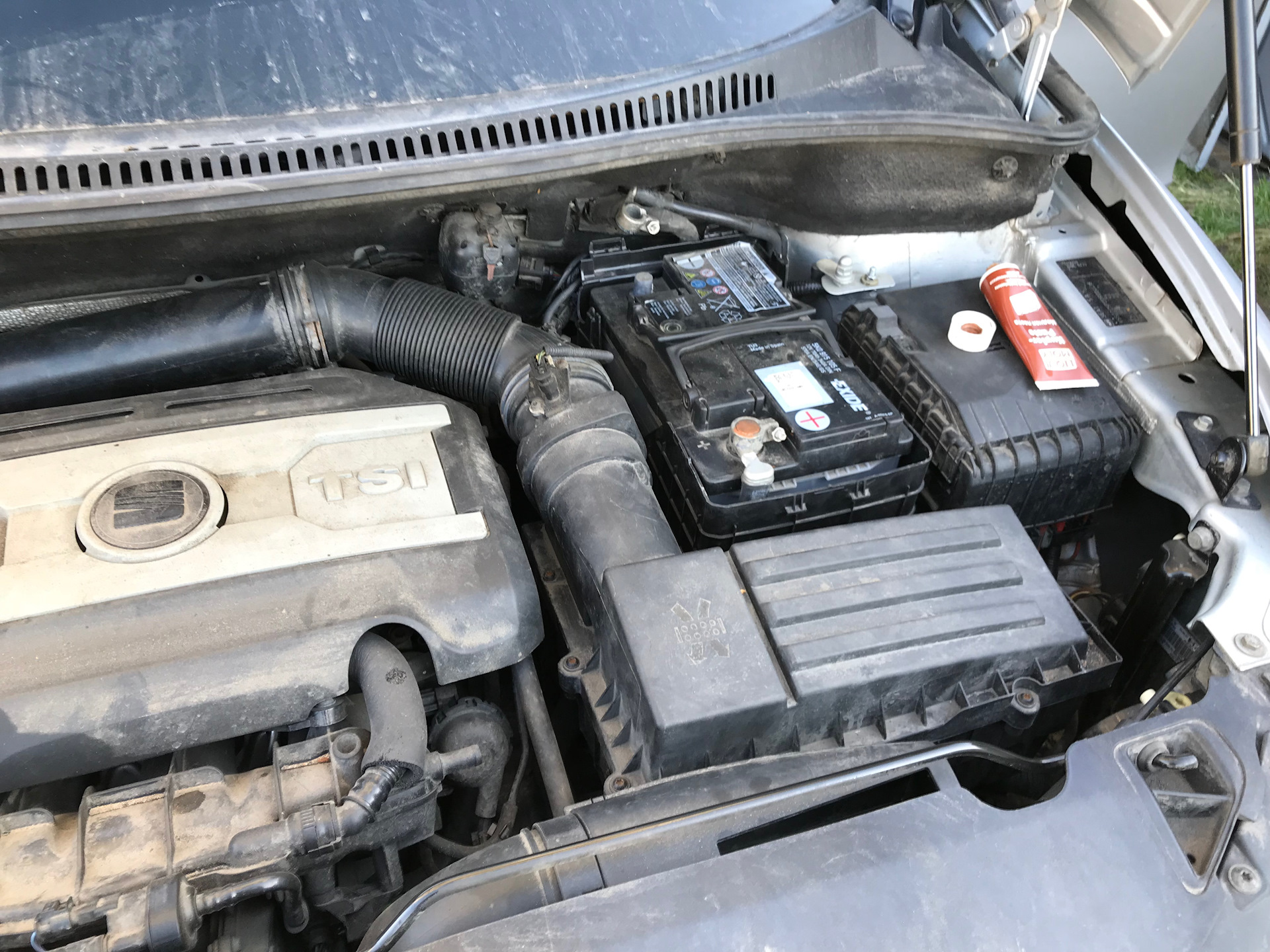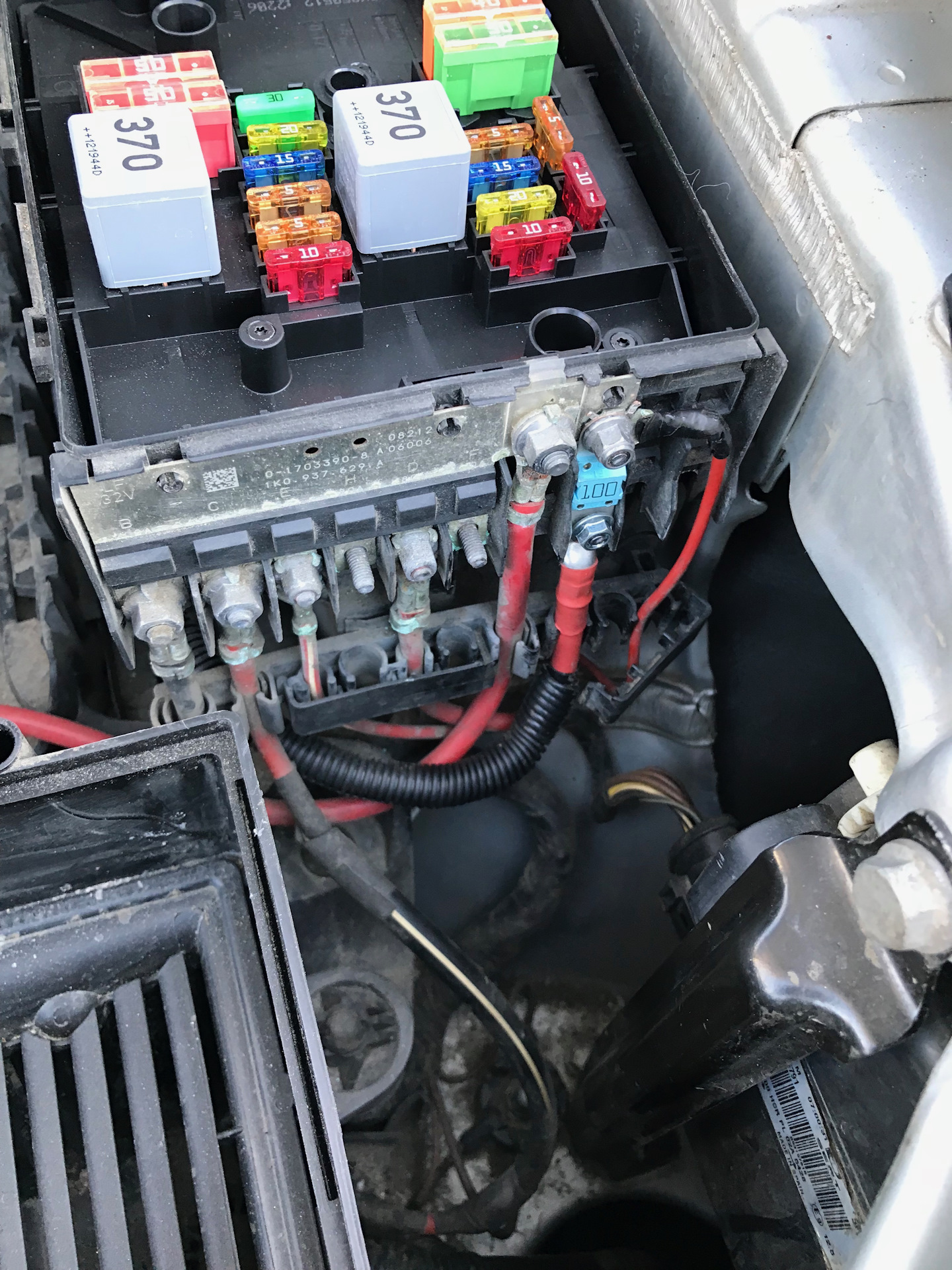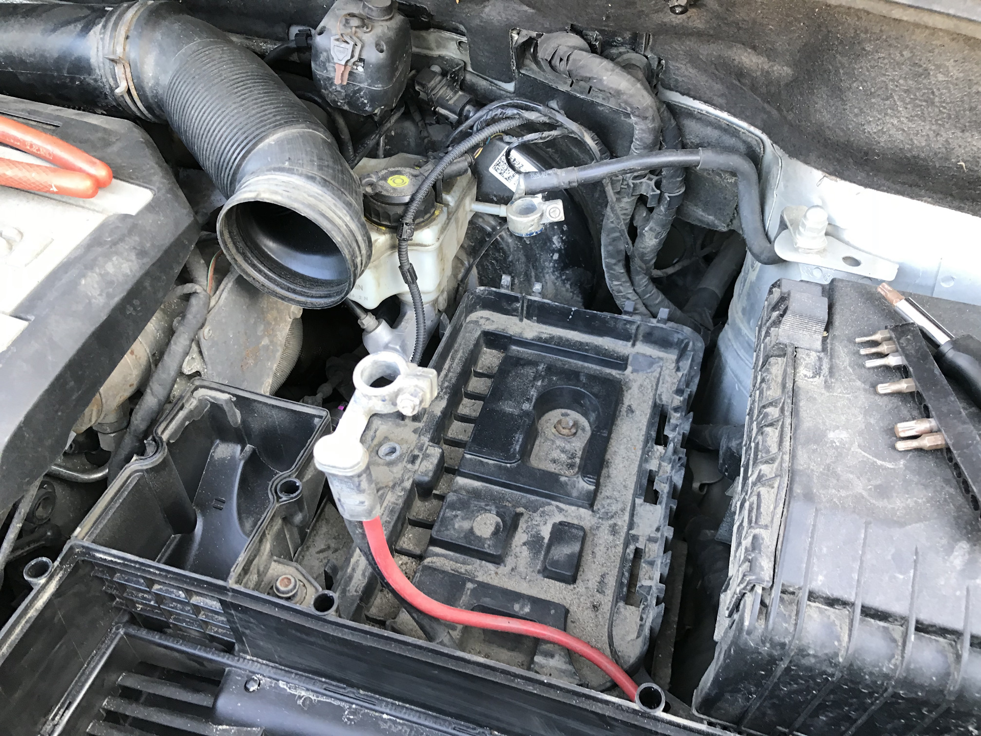 Как видно необходимо снять впуск и акб. Тогда все будет легко. На фото видно минус и куда подключен фен через предохранитель.