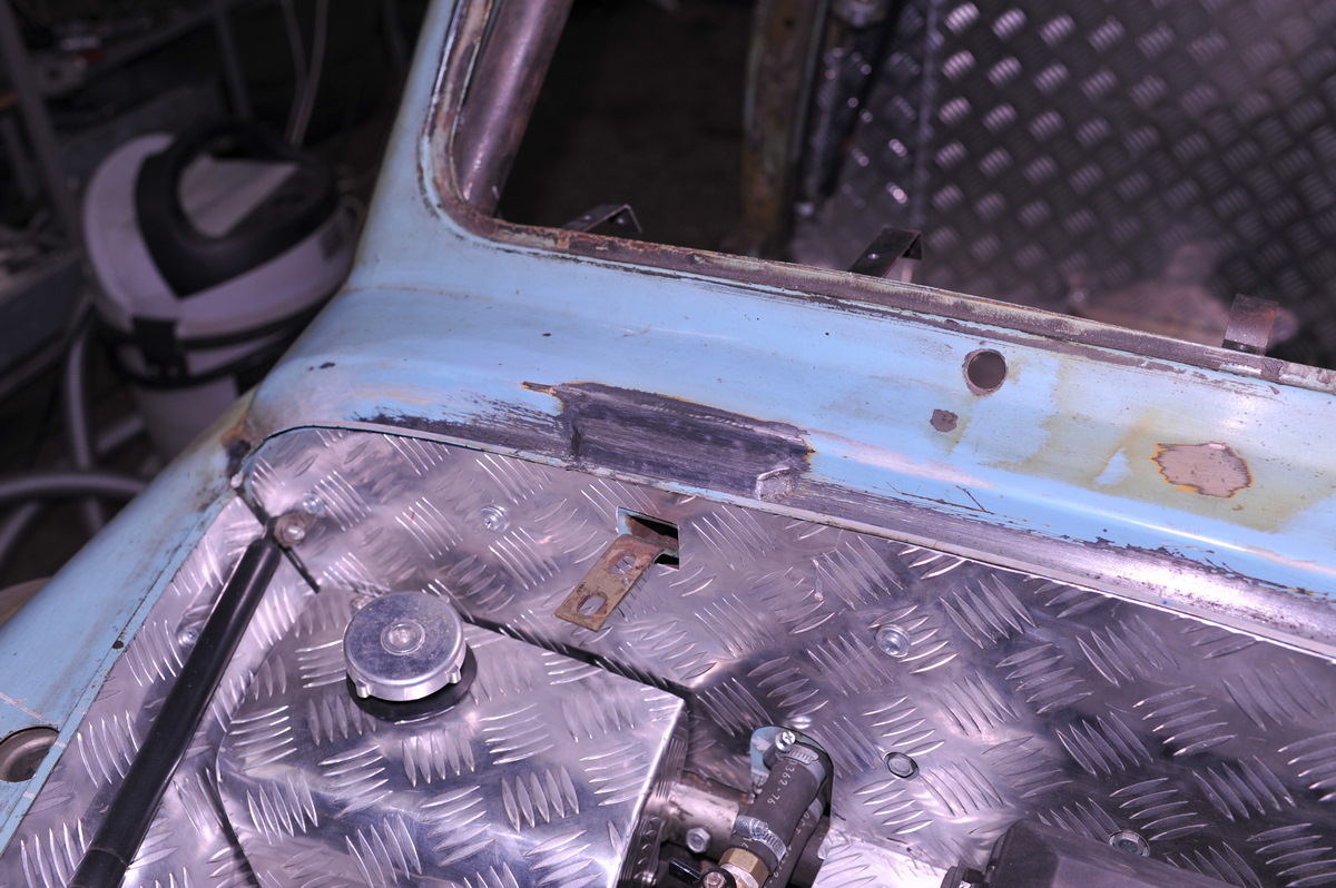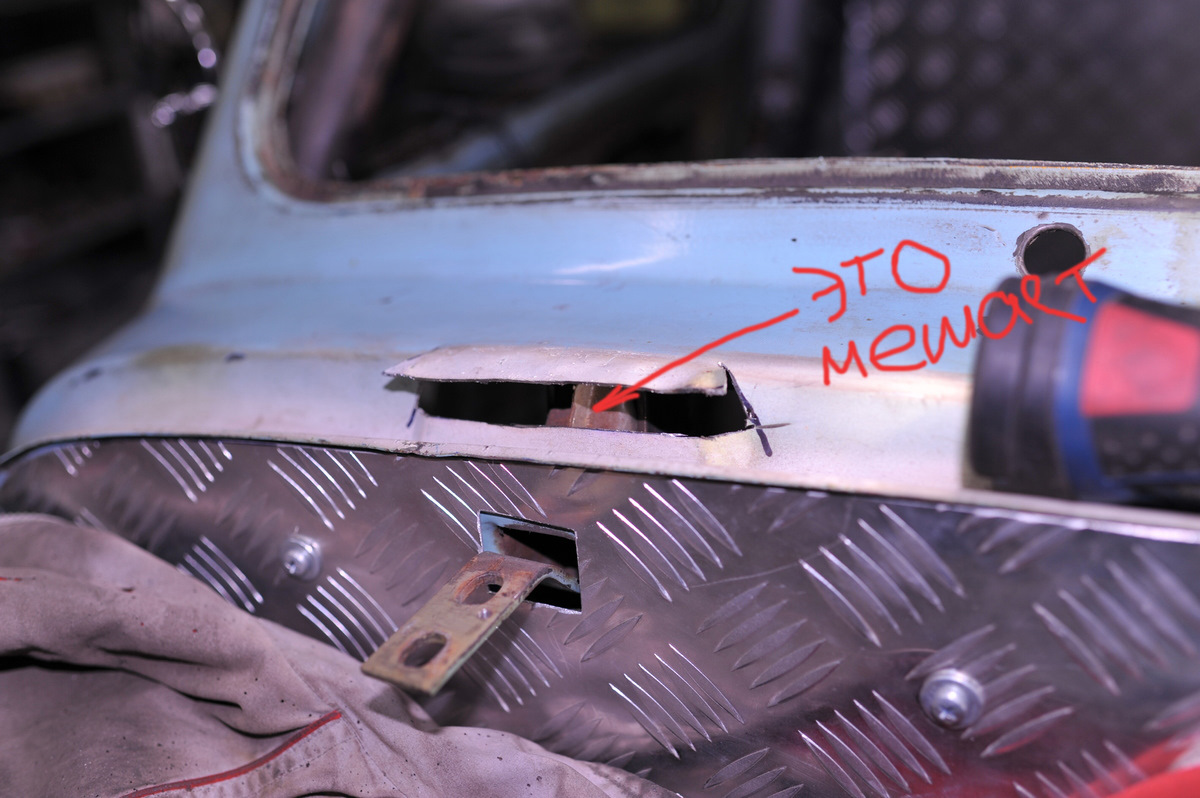 «Открываю» его, т.к. знаю что за ним есть то, что будет мне мешать. Это "то" — стык 2-х половинок держателя петли капота, ради которого конструктора изменили геометрию кузова!