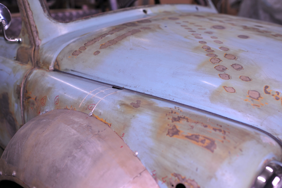 Машина не битая, все детали родные. Ну как так можно! Соответственно, если убрать этот зазор до «приемлемого», то спереди (представьте себе) как капот смещается и образуется «порожек» между ним и кузовом. Короче, решаюсь на увеличение длины капота по правой стороне. НО, конструктора ЗАЗ-965 и здесь «позаботились» (чтобы эту задачу усложнить) и сделали 2 выпирающие формы (по одной с каждой стороны), вот фото одной из них: