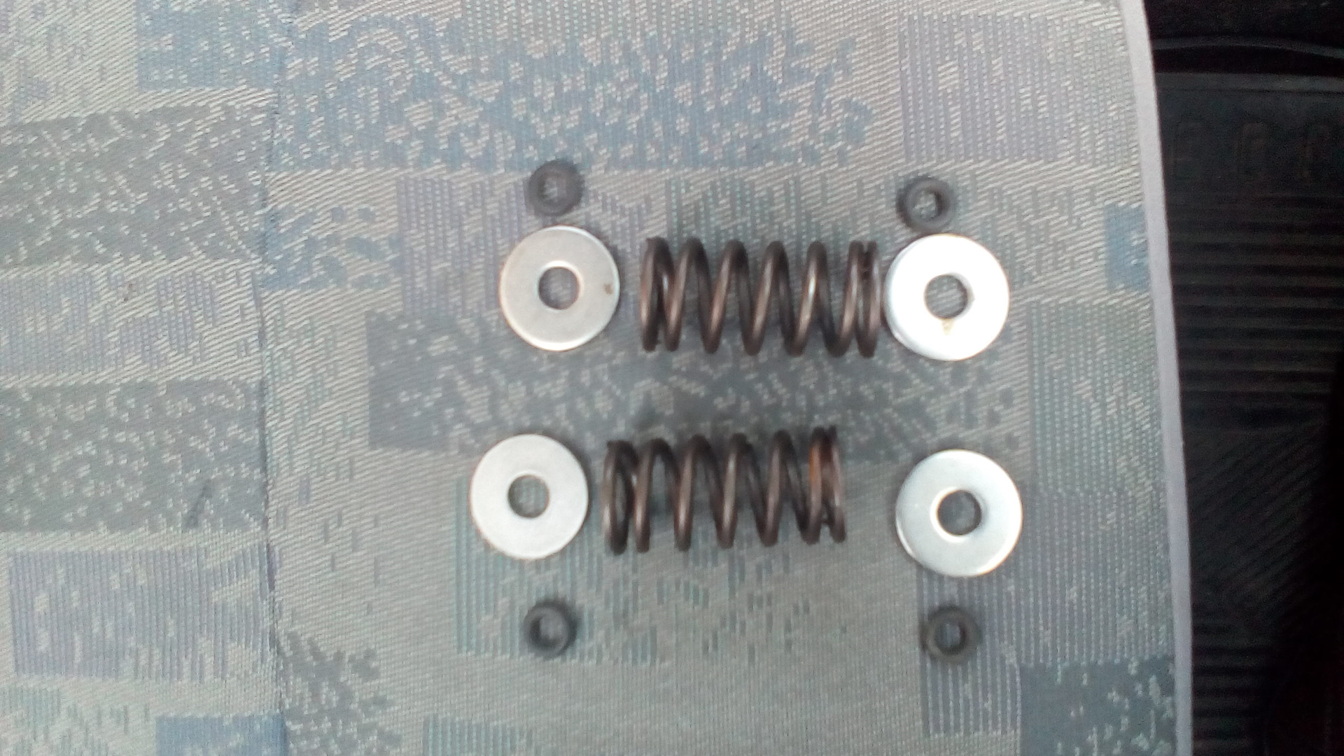 Делов ушло 5 минут, нашел пружинки клапана 2108 внутренние, шайбы обычные, м8 широкие, прям что доктор прописал. Резинки не ставил. Внутри осталась штатная резинка амортизатор, поддерживает пружину что бы сильно не сваливалась по оси. 4олечко резиновое не помешает одно, что бы пружинка по штоку не летала туда сюда… должно от форсунки подойти.
