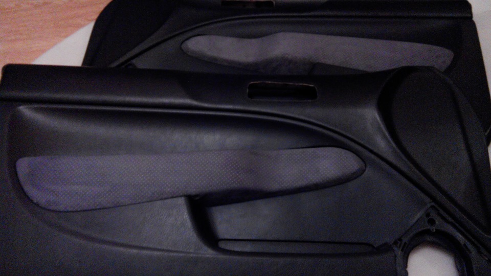 Такая вот подготовка к осени и зиме. Теперь о других работах. Заменил тряпки на дверях, старые затерлись и чиске уже не поддавались. Выход найден в виде искуственной замши. Делается за пару часов. Новые обшивки я не стал даже приклеевать, хорошо натягивается и зажимается при фиксации подлокотника саморезами. В дальнейшем думаю сменить на экокожу.