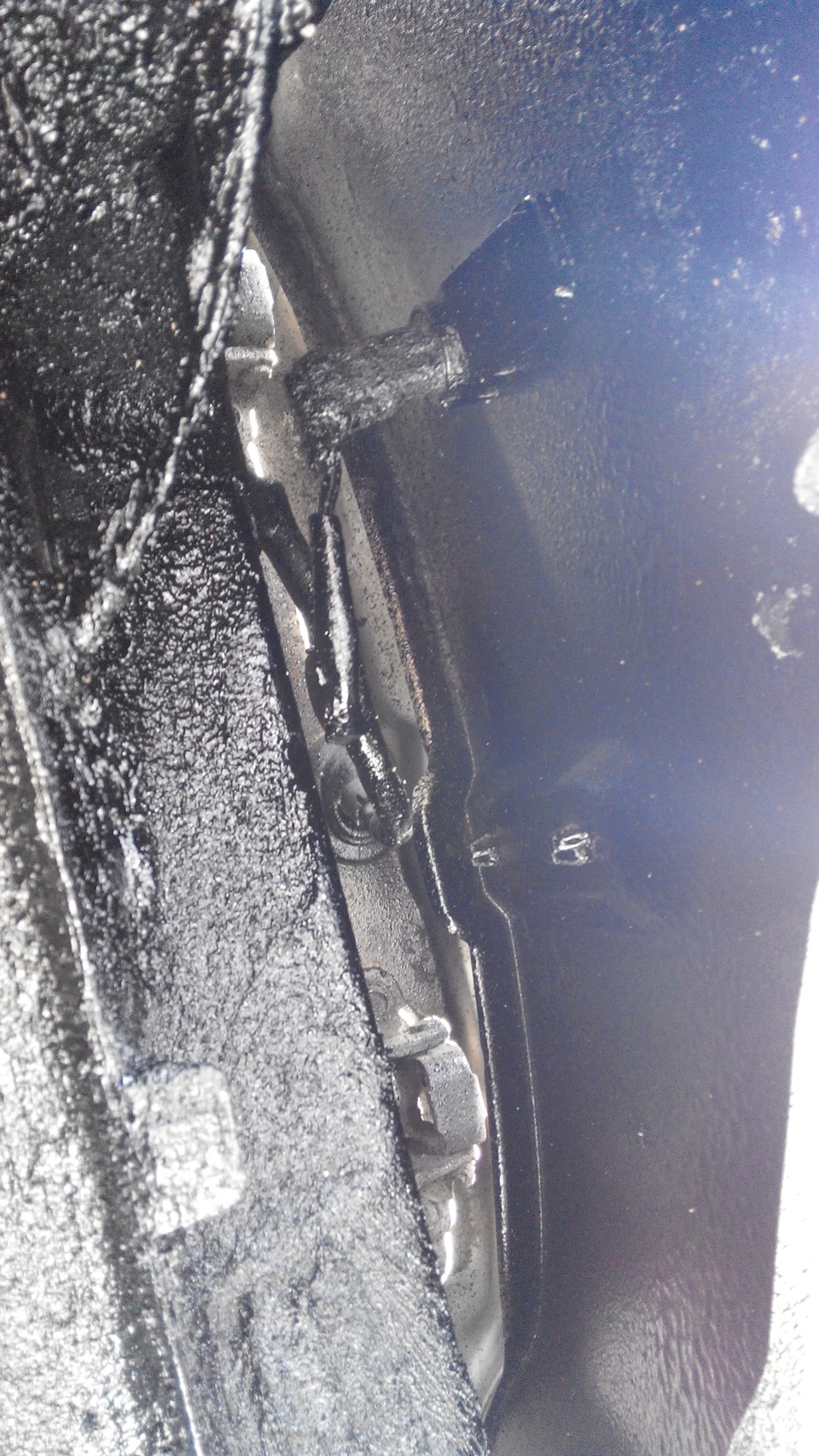 Также пришлось обработать кромки задних арок. Одевать защитные резинки после покраски я не стал, дабы не собирать влагу под ними. Минусом этого решения стали отпескоструеные за зиму кромки. Пришлось исправлять.