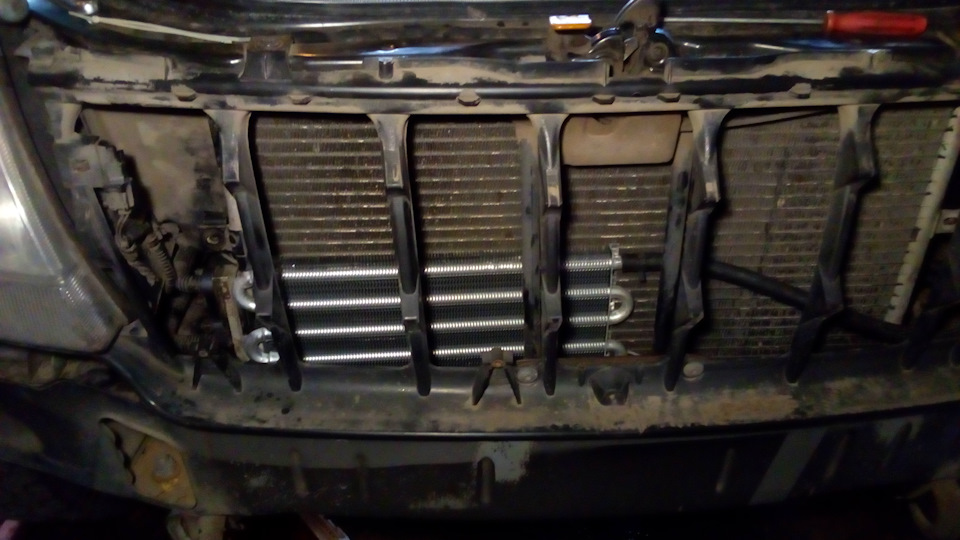 Радиатор встал тоже довольно плотно, но хорошо. Закрепил его стяжками, но позже также подумаю о более прочном креплении. Конечно же, после этой процедуры надо долить около литра масла для АКПП.