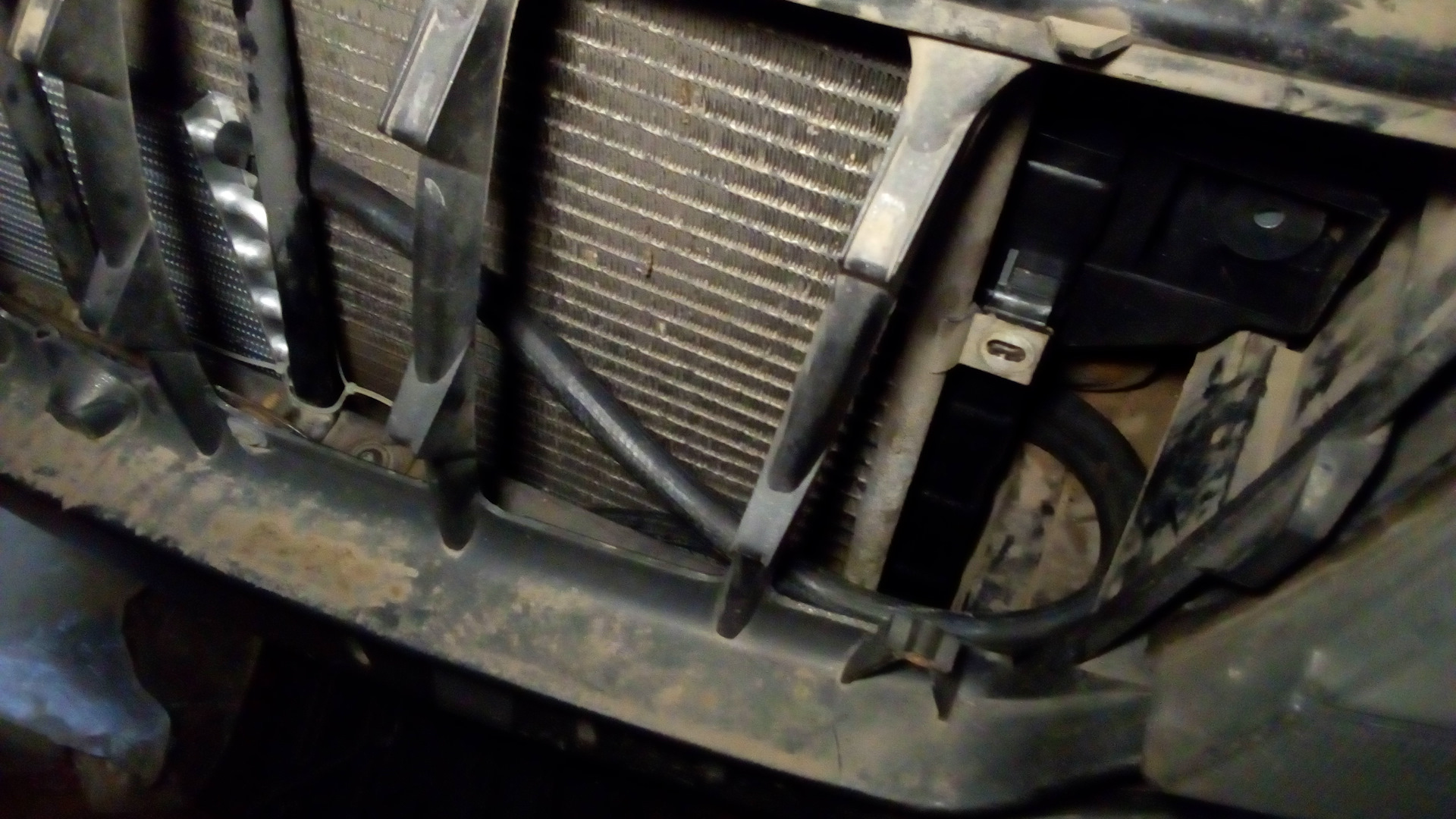 Тоже самое ставил одному человеку, термостат крепил справа под фарой на самодельный кронштейн