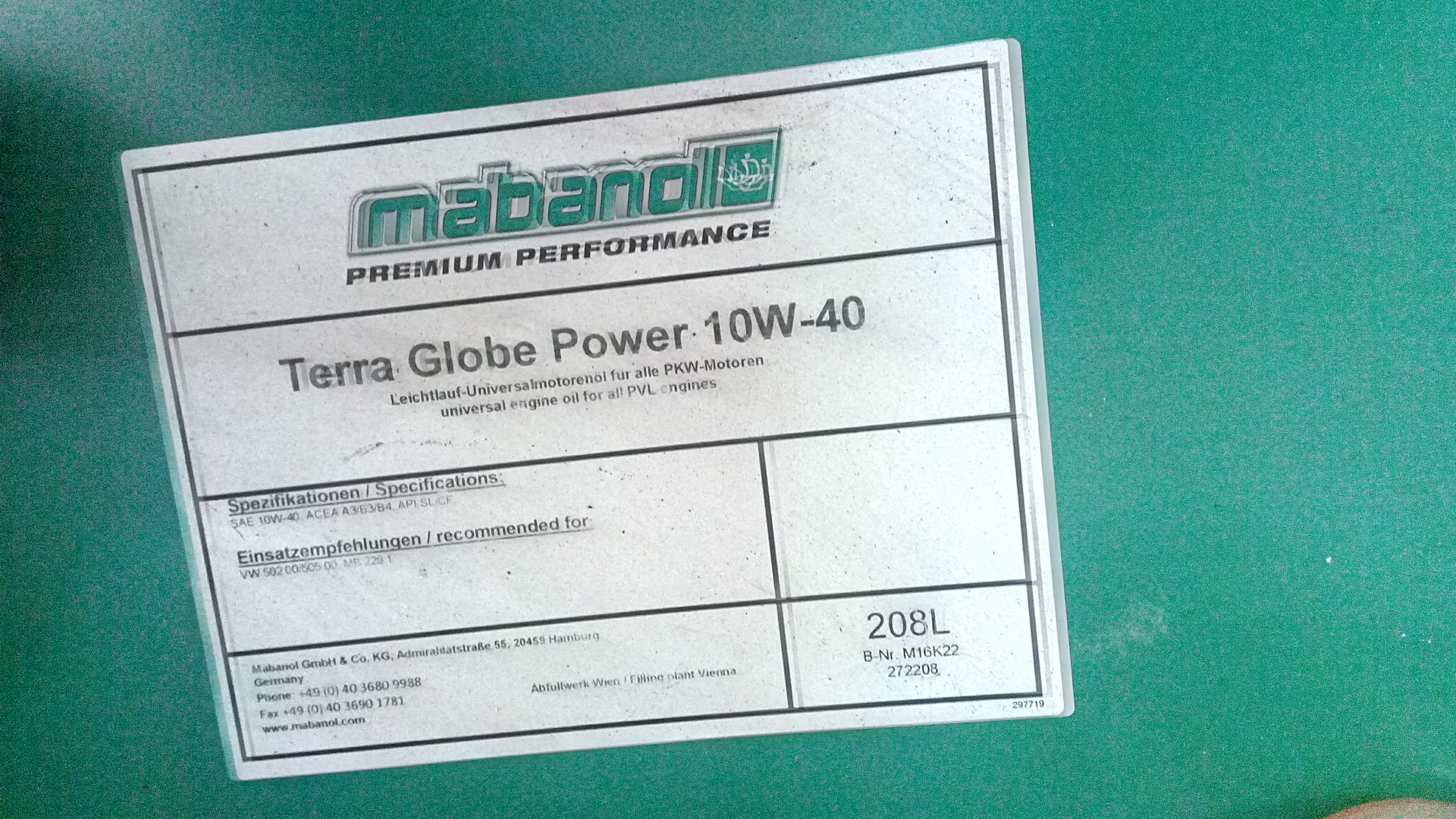 Сегодня сменил мамло в двигателе. Залил Mabanol Terra Globe Power 10w40 полусинтетика. В последний раз, весной я залил тоже масло, что и сейчас. Проехал на ней около 7500 км. Особых нареканий или восторгов не выявил. Посмотрим, как двигатель поведет себя в морозы.