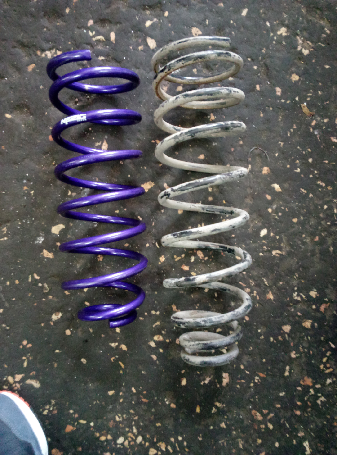Фоток самих пружин почти нет но вот, для примера, сравнение задних пружин — сток и танабе.