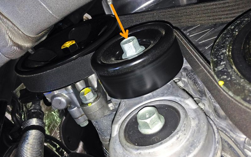 ![Для навесного ремня двигателя 1.6 в паре с насосом ГУРа предусмотрен автоматический ролик-натяжитель. Для его ослабления поворачиваем против часовой стрелки ключом «на 14» регулировочный болт [оранжевая стрелка]. — Hyundai Creta (1G)](https://a.d-cd.net/84a6825s-960.jpg)