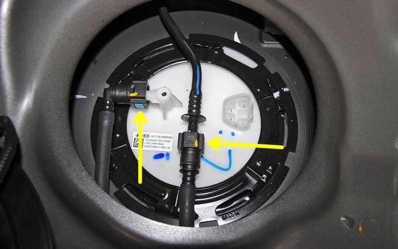 ![Топливный насос со встроенным фильтром фиксируется металлической пластиной-гайкой. Для нее предусмотрен специальный съемник, но можно справиться и подручными средствами. Топливные магистрали имеют стандартные квадратные замки по бокам [стрелка], а колодка насоса — простой язычок-фиксатор. — Hyundai Creta (1G)](https://a.d-cd.net/b4a6825s-960.jpg)