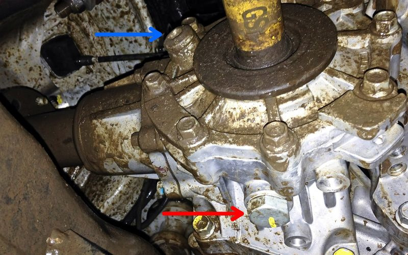 ![Сливная пробка раздаточной коробки [красная стрелка] — под головку «на 24», а заливная [синяя стрелка] — под шестигранник «на 10». — Hyundai Creta (1G)](https://a.d-cd.net/e8a6825s-960.jpg)