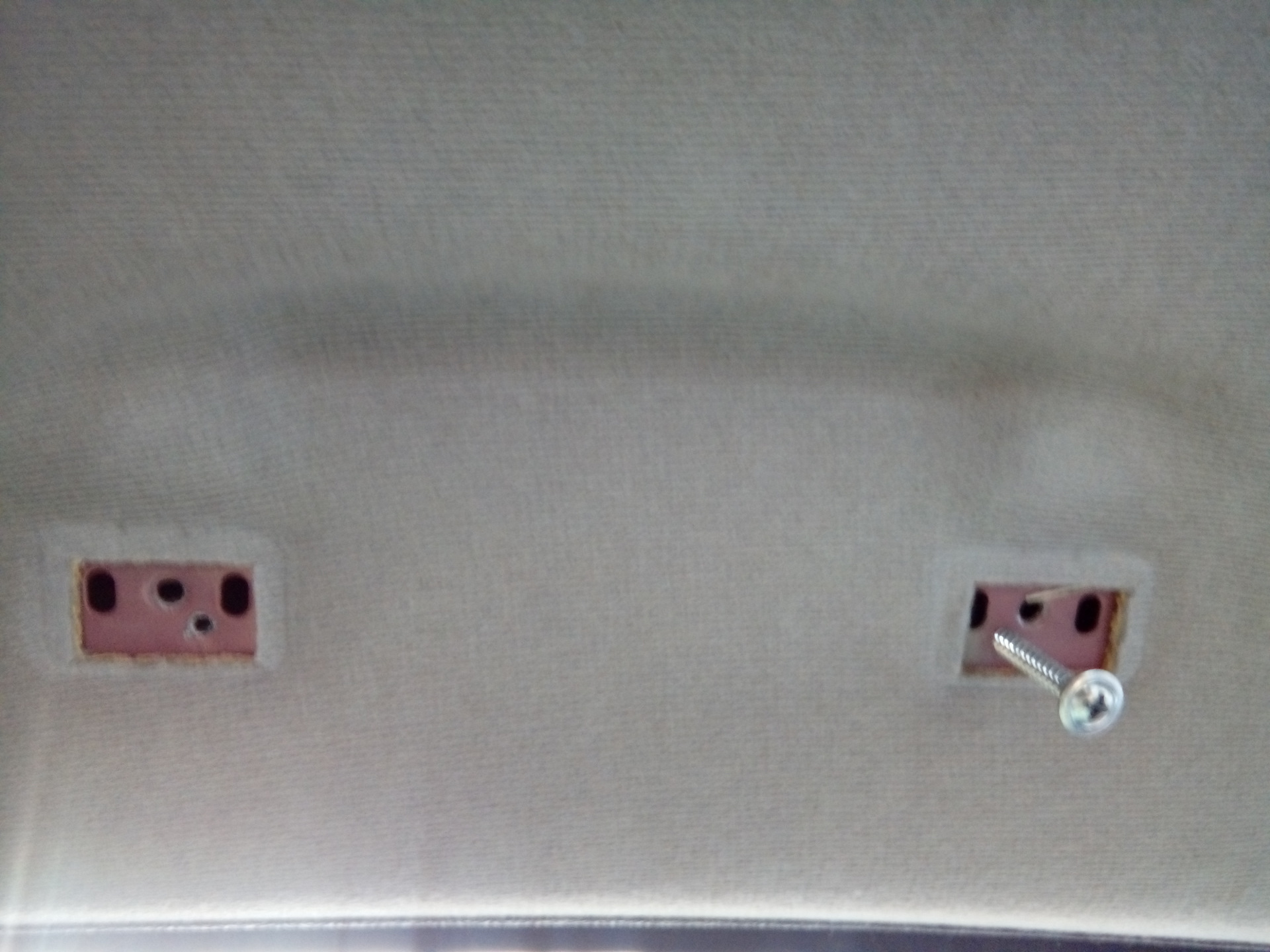 Футляр едва закрывает отверстия в обивке потолка, поэтому отверстия необходимо намечать аккуратно. И еще кронштейны футляра не перекрывают отверстия в обивке. Чтобы неприкрытые участки меньше бросались в глаза (видно при открытом футляре) я приклеил кусочки войлока для мебельных ножек (покупал в фикс-прайсе).