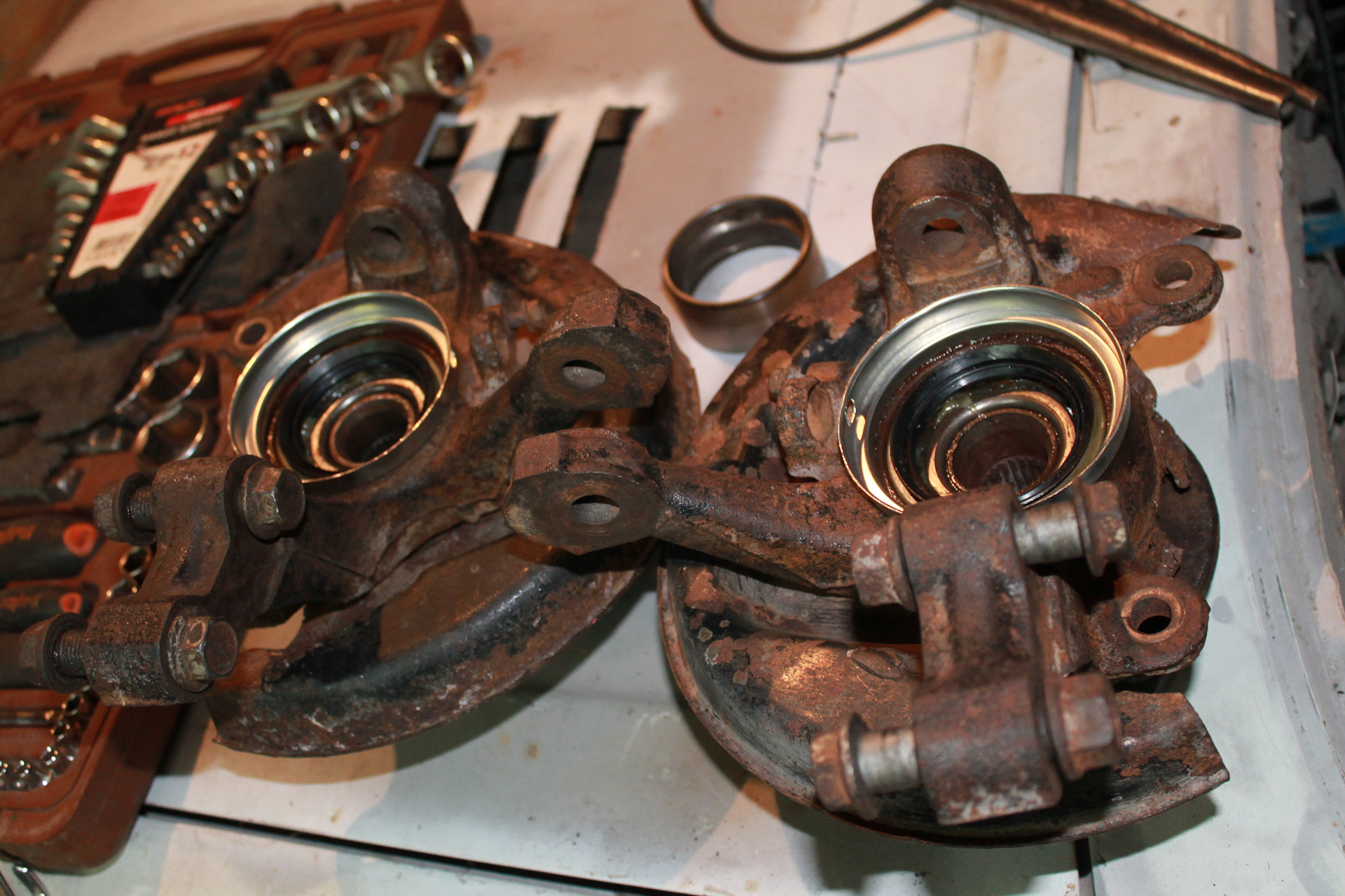 Ступица выбивается легко из кулака, гильзу кое как выбил молотком. Тормозные диски вообще на мертво приржавели к ступице, да и менять их нужно однозначно, так как износ там адовый. А подшипники я запрессовывал с помощью тисков. По итогу доволен, получилось очень хорошо и довольно качественно.