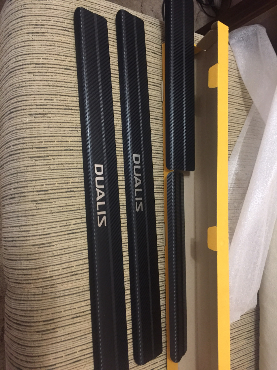 Ну, лучше поздно чем никогда) Заказал на сайте ddtuning карбоновые пороги) Остался доволен) Не люблю серебристые — ну в черную машину они ну никак по-моему… простите за грязные фото ковриков салона, осень все же… помою скоро :)