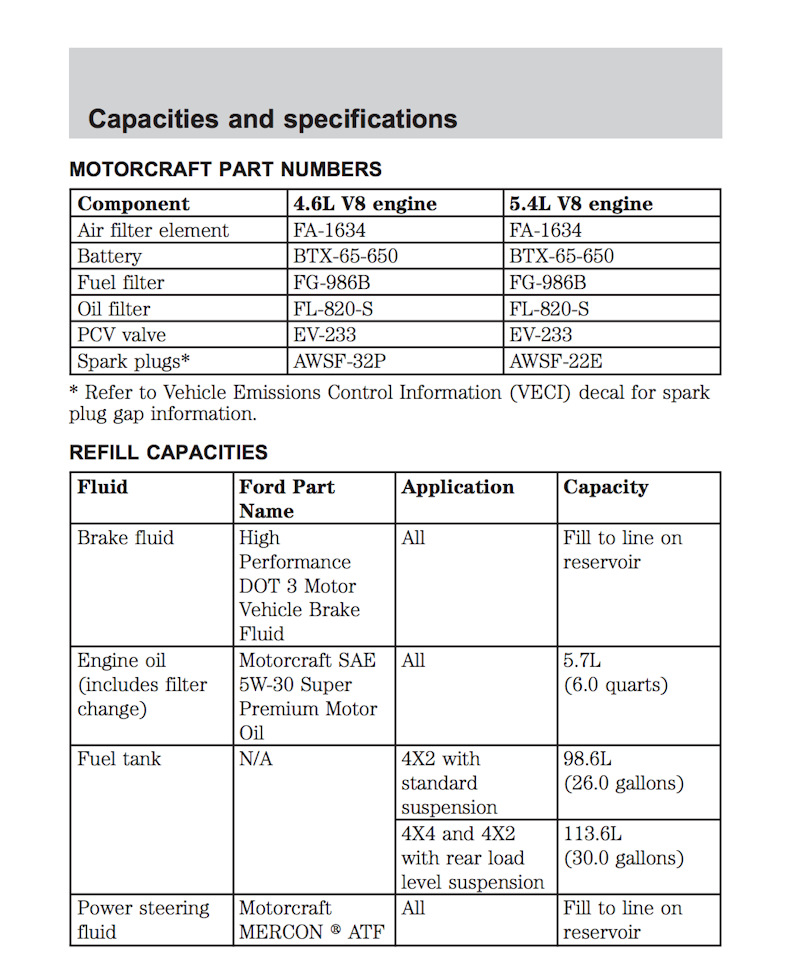 Вот скан мануала Ford Expedition 2000 года с двигателем 5.4 Liter (330 cu in) 16-valve SOHC Triton V-8 gasoline. В нём рекомендована вязкость 5W-30. Можно конечно в подобный двигатель с малым пробегом и износом лить и RAVENOL SFE 5W-20, но так как двигатель уже не юнный, то мы рекомендовали RAVENOL FDS 5W-30 полностью синтетическое масло на основе полиальфаолефинов (ПАО).