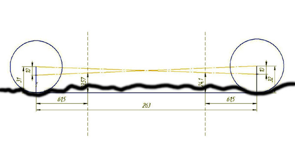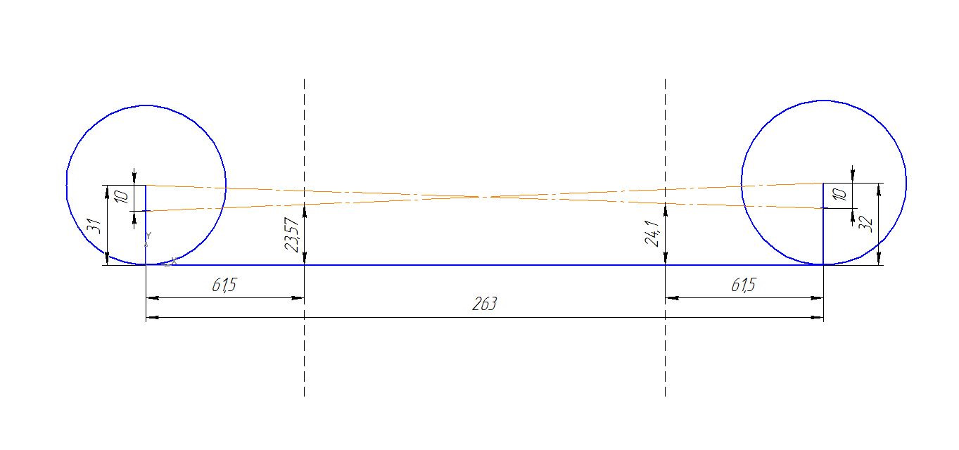 Вооружившись рулеткой пошел обмерять автомобиль. Далее на скорую руку сделал чертеж в Компасе с условием, что спустившись в ноль колесо опустится на 10см. По чертежу делаю вывод что теоретически есть шанс не доставать штатный домкрат…)))))