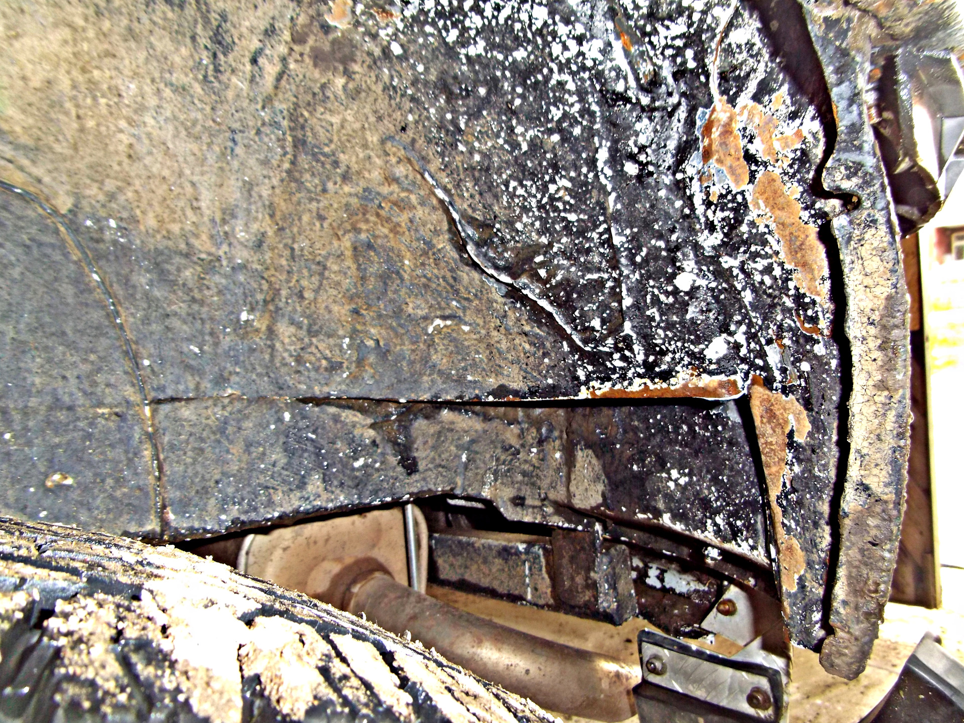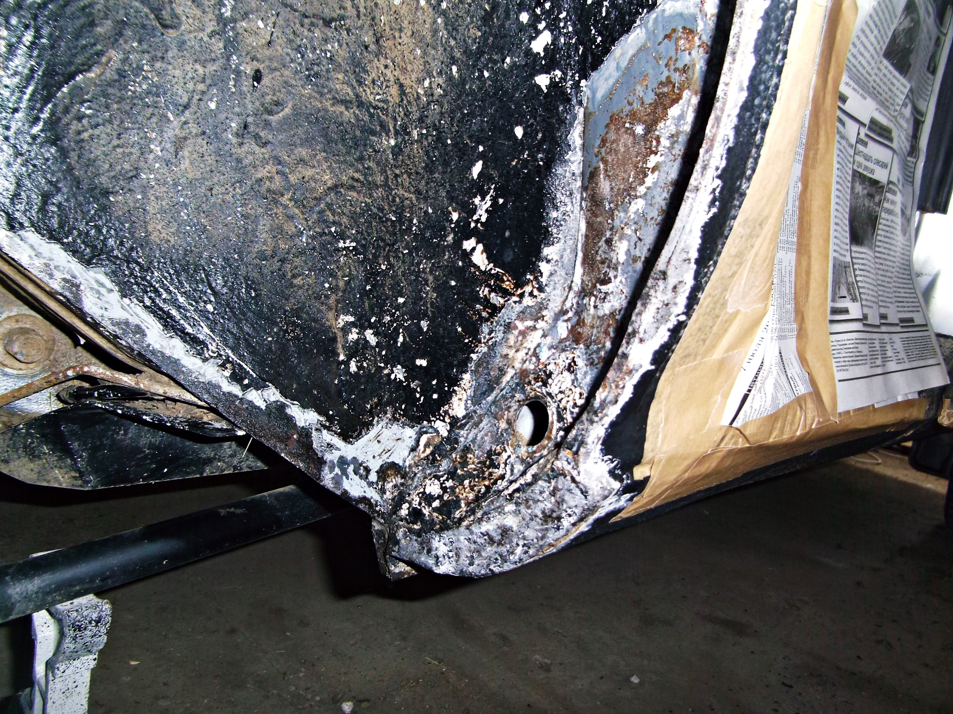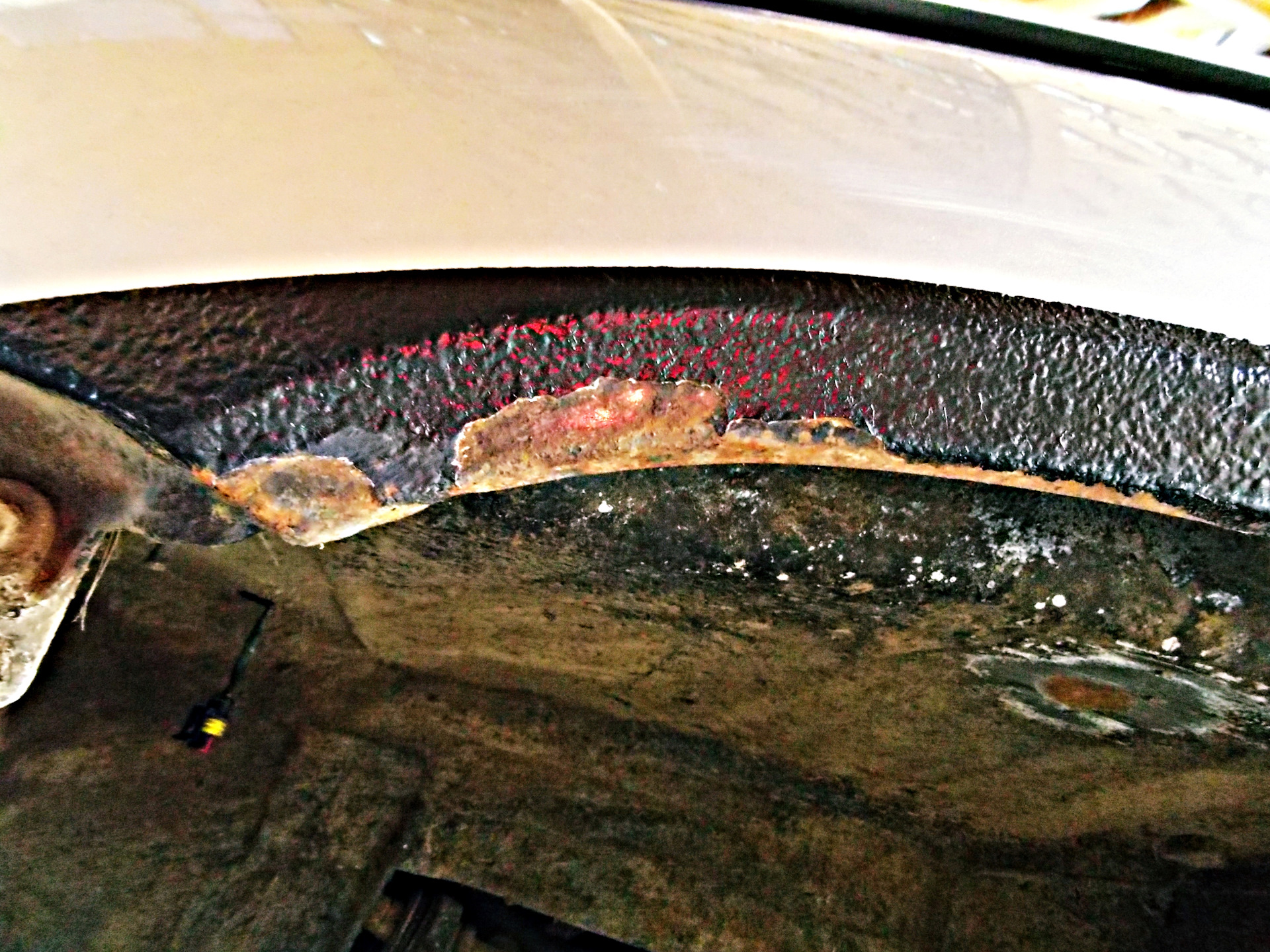 Зачистил все по максимуму до металла, обработал цинкарем, после еще раз цинкарем раза 4, смыл его тщательно смесью соды и воды. Голый металл просыхал, далее в 3 три слоя покрыл кислотным грунтом, перекрыл акриловым: