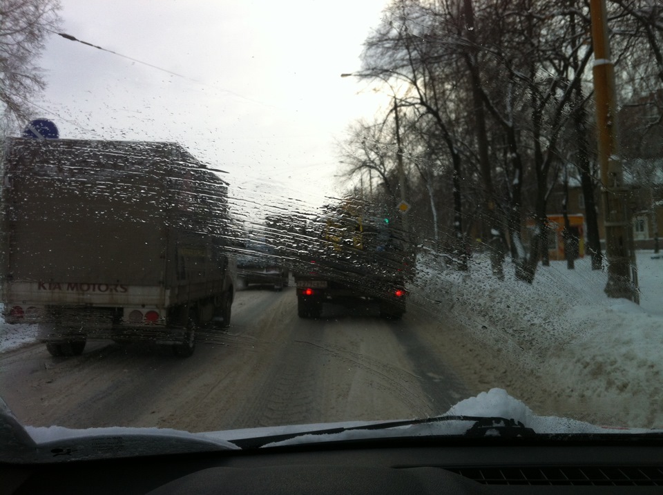 1. Бескаркасные дворники у вас какие-то странные, может новые купите или каркасные. Такой след, будто вы их используете 100 лет. Наверное по стеклам с ледяной коркой любите ими работать?