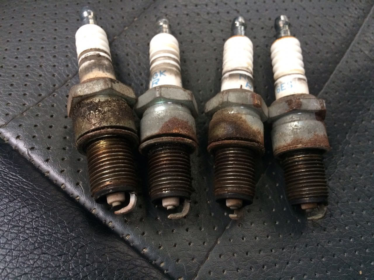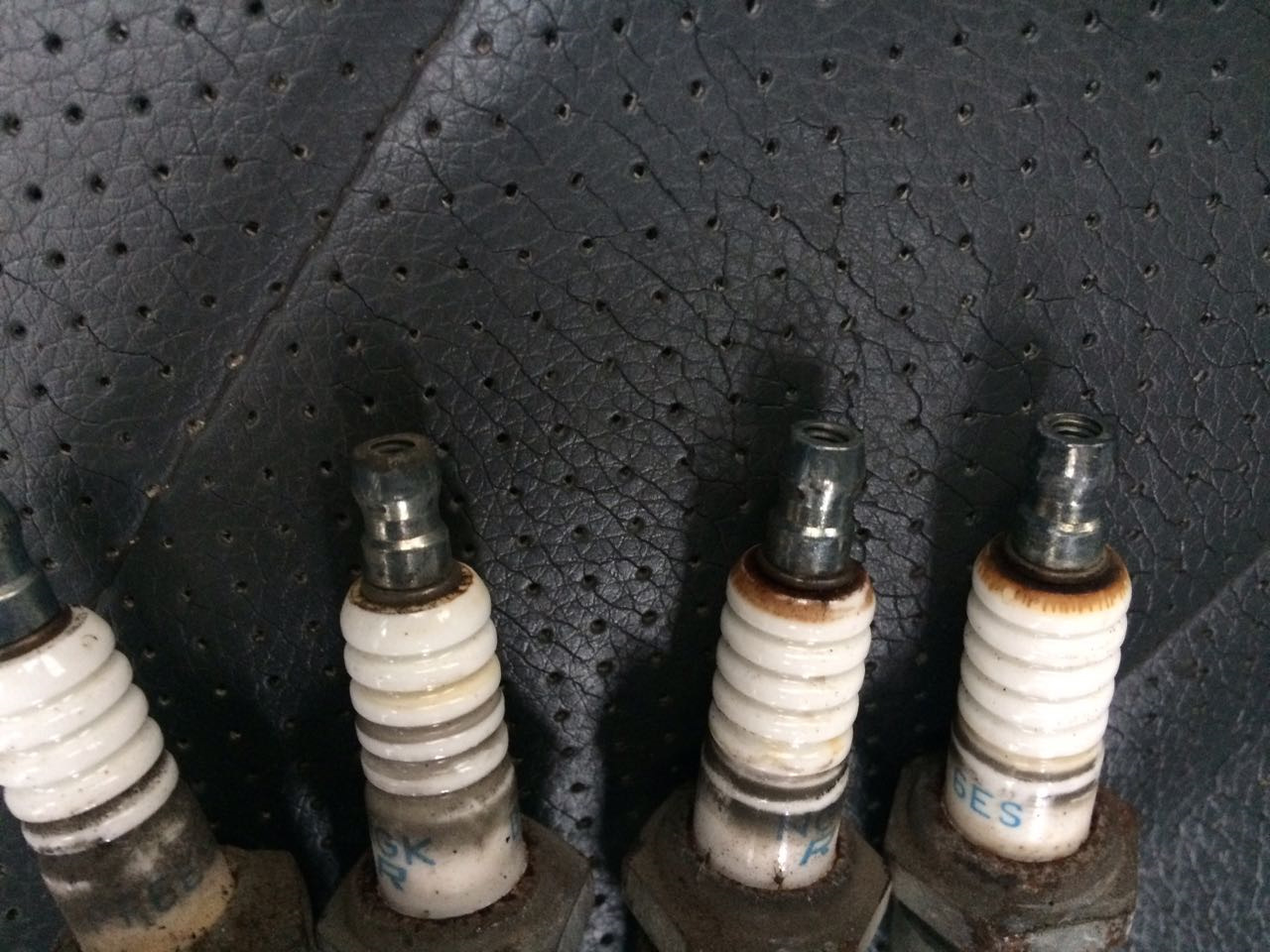На этом фото можно видеть что наверное был не довернут колпачок и на двух правых свечах от пробоя они стали синими. На новых в этот раз проверил, все сильно закручено.