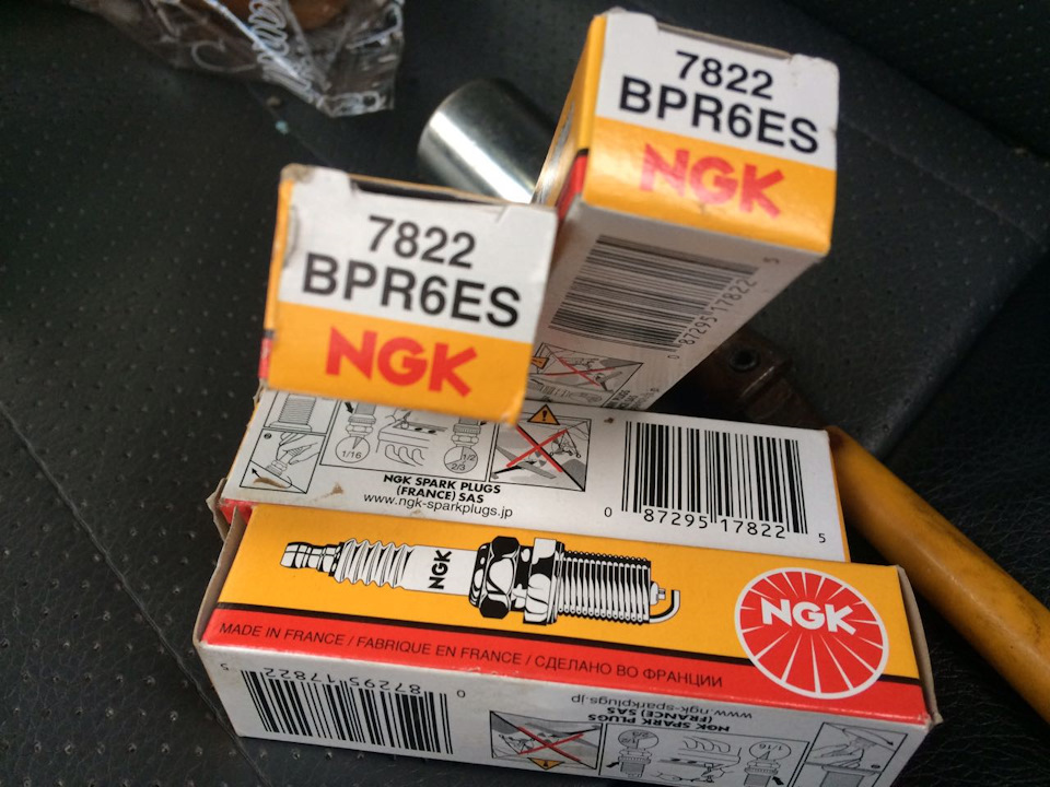 Приветствую уважаемые подписчики). Совсем из виду выпустил я свечи зажигания. Пробежали они у меня 40К. Не мало. Двигатель в принципе работал сносно, но начались вибрации и чуть более долгий старт. Решение принято — менять свечи. Купил все те же NGK BPR6ES. В магазине снова уверяют что чистая Франция!