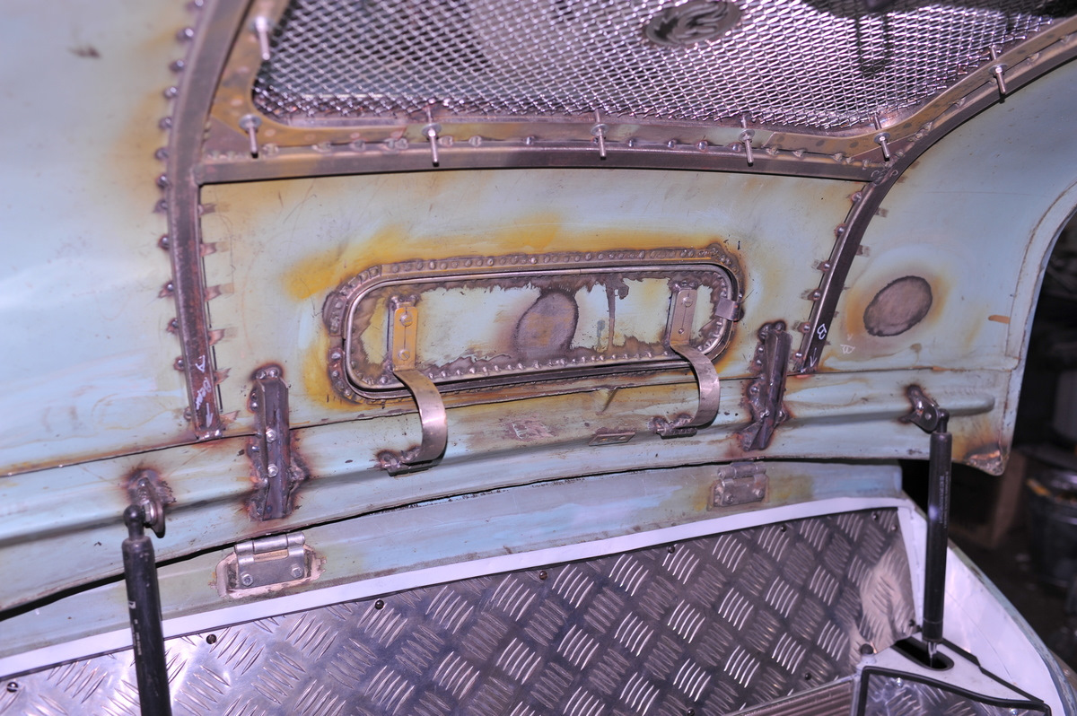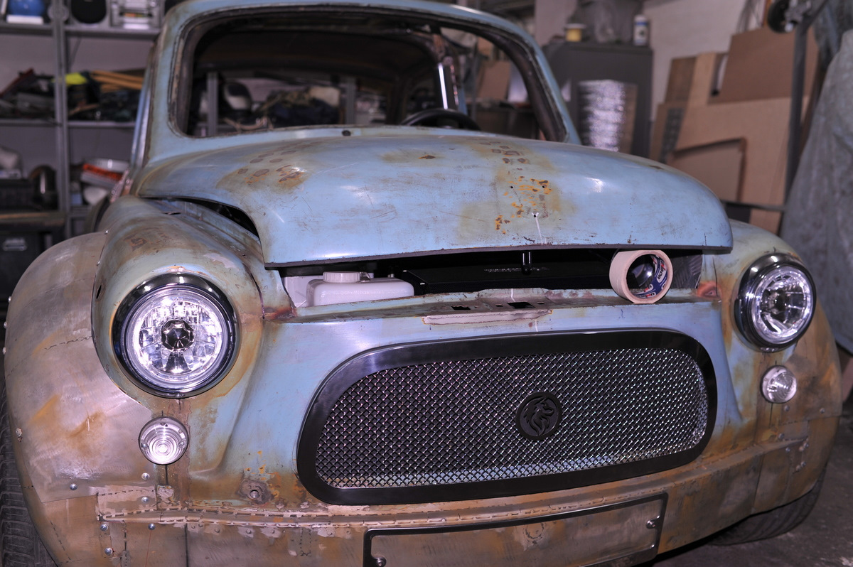 Здравствуйте, великолепная работа ! Закруглить панель- вырезать шаблон с картона, потом с доски и по торцу выстучать ( наверно) радиус.а с запасным открыванием капота- делать все запирания за решеткой радиатора, но, что бы можно было бы демонтировать ее в случае надобности. Решетка не должна сниматься легко, !