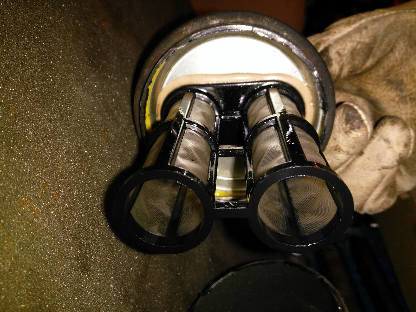 Тоже накрылся датчик, тоже круглый. Пока вткнул в разьем резистор на 200 Ом для успокоения компа. Саму банку водоотделителя снял, подключил грушу к фильтру.
