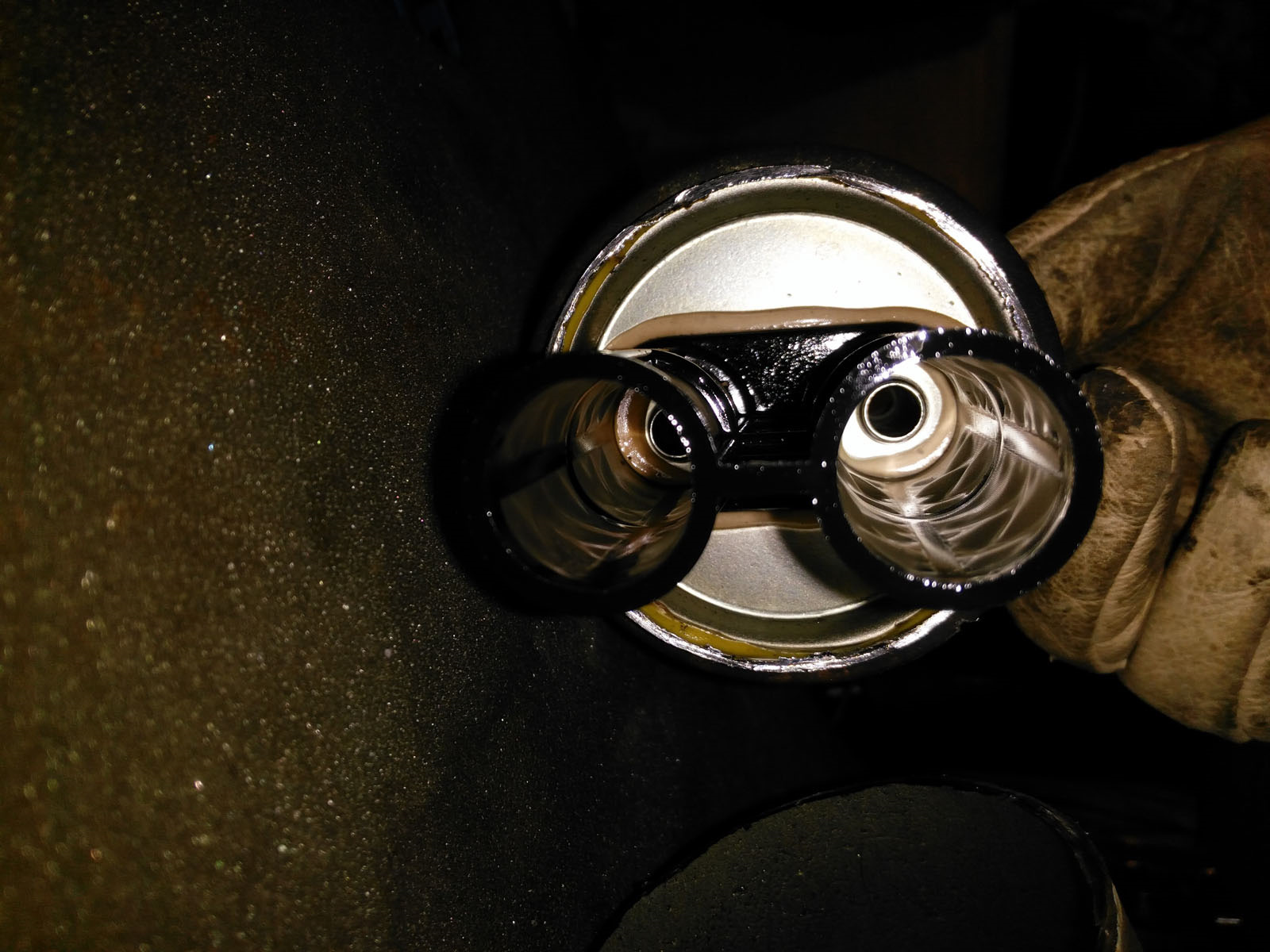 Обратите внимание, на всех датчиках есть бортик со стороны колбы и некий полый цилиндр, обращенный вниз. Открутив не до конца датчик, жидкость будет вытекать из этого отверстия. Объем сепаратора ~1 л.