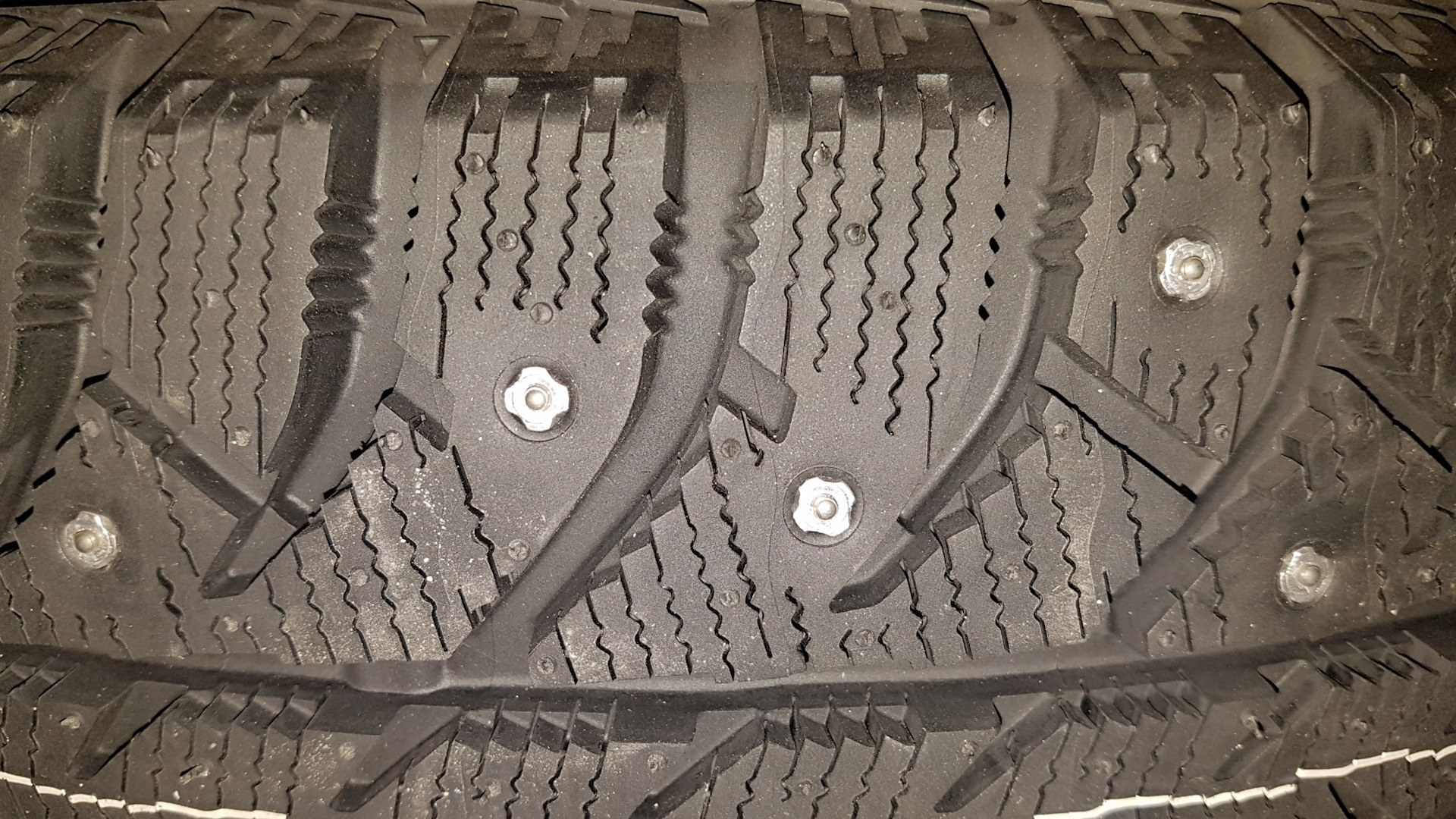 + у меня после того сезона на одном переднем колесе — 18, а на другом аж — 28 ШИПОВ!