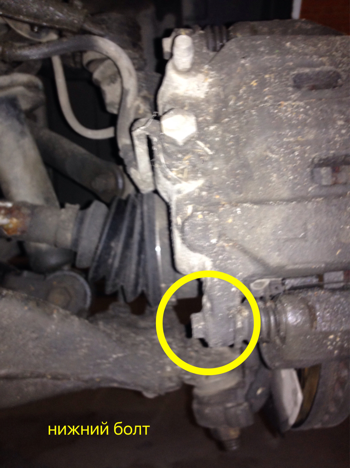 3. Откручиваем нижний болт крепления направляющего штифта суппорта.