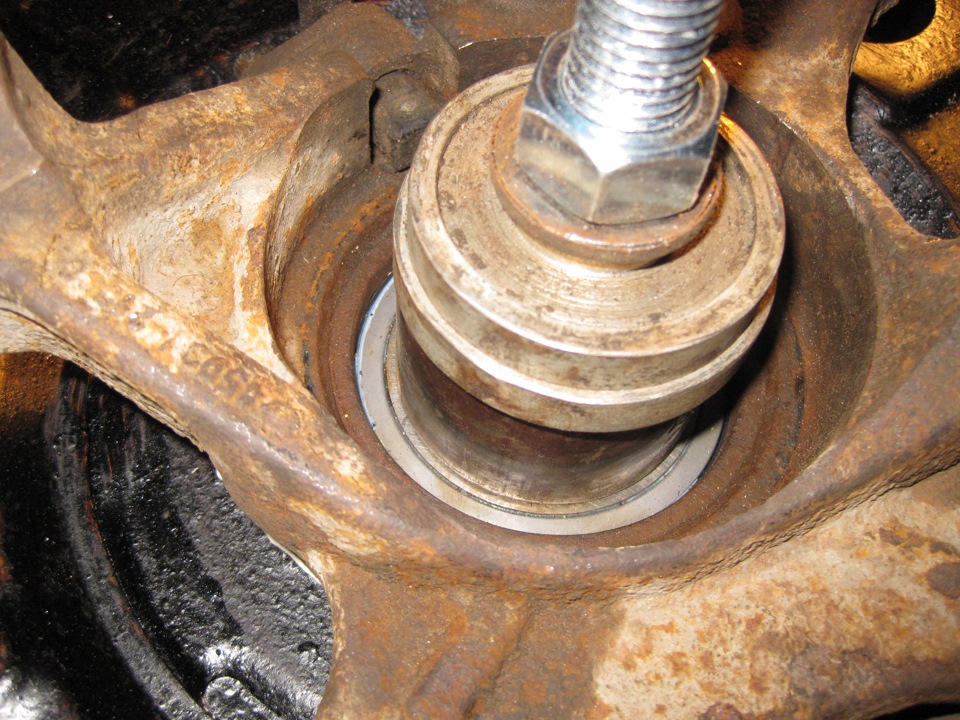 Молодец. Золотые руки. Я менял передний левый подшипник. В гараже распресовать не смог. Снял рычаг, отвёз на завод и там на прессе распресовал и запрессовал.