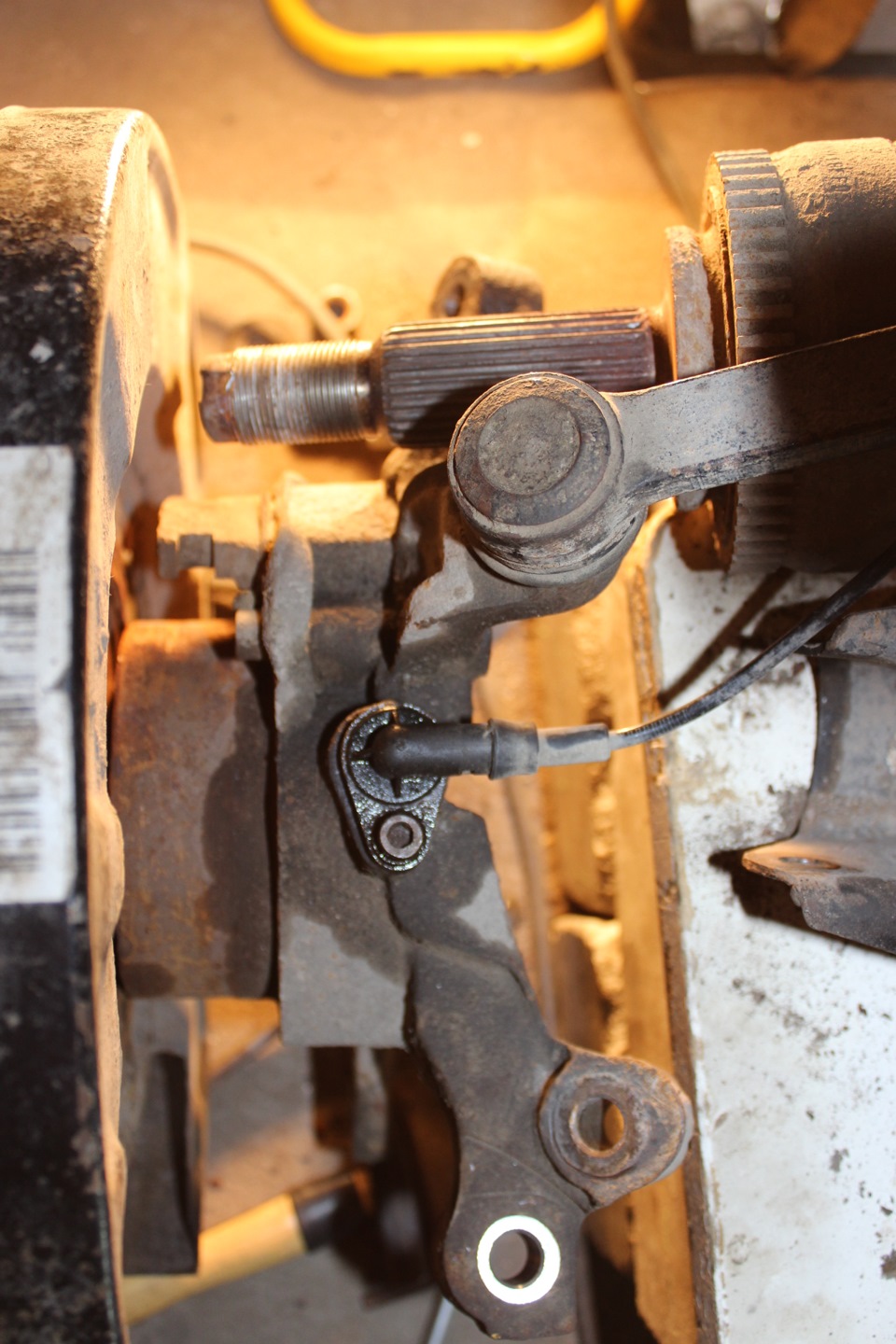 Добрый день.Подскажите пожалуйста а как отсоединить трос стояночного тормоза?С датчиком АБС я обошелся проще-рассоединил разьем, можно перемещаться.