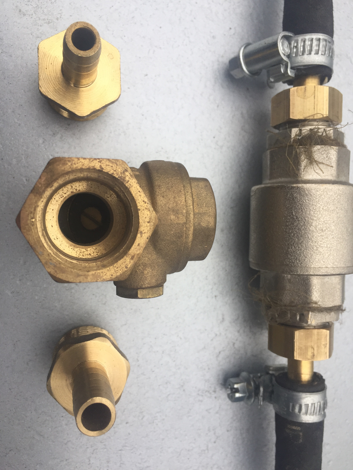 Собственно продолжим про обратный клапан, на строительном рынке я обнаружил другу конструкцию обратного клапана без пружинного подпора! Внутри используется заслонка, которая под собственным весом перекрывает канал. Данный клапан я установил под небольшим наклоном для боле герметичного перекрытия. На холостых оборотах помпы хватает для открытия клапана, к сожалению отечественный предпусковой подогреватель «Северс+» предательски отказал и проверить клапан по прямому назначению на данный момент невозможно. Я постараюсь решить проблему с предпусковым в ближайшие время, протестировать клапан и написать о результатах в борт журнале.