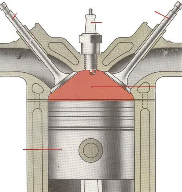 Вот так выглядит камера сгорания обычного распространённого бензинового двигателя: