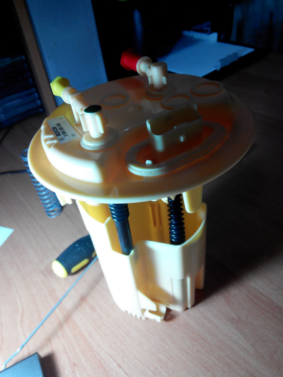 Дабы не повторить неприятностей прошлой зимы, решил установить подогрев заборника топлива. Начал изучать вопрос и оказалось, что можно установить готовые заводские подогревы (Платан ЭПДТ-150С, Номакон НТП-100 (пример установки от ddm2003), Номакон НТП-300) или пойти путем их самостоятельного изготовления (пример и еще). Решил приобрести заводской вариант — менее распространенный, чем Номакон Платан ЭПДТ-150С. Найти его в Минске была та еще проблема. Нашел у какого-то частного продавца за 40$ кажется. В отличие от Номакона, заводской комплект Платан ЭПДТ-150С ни реле, ни кнопок, ни проводки в себя не включал, только лишь один плюсовой провод с клеммой. Я ожидал, что ремонт будет долгим, поэтому заранее купил новый топливозаборник Bosch 0 986 580 365.