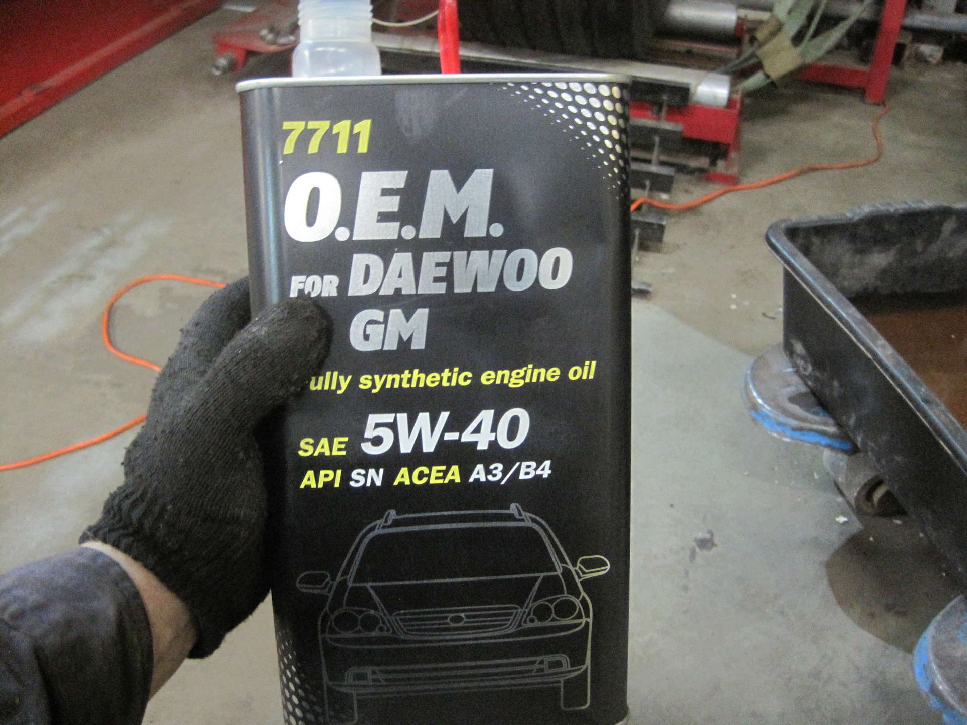 Масло такое же залито, но в пластмассовой канистре