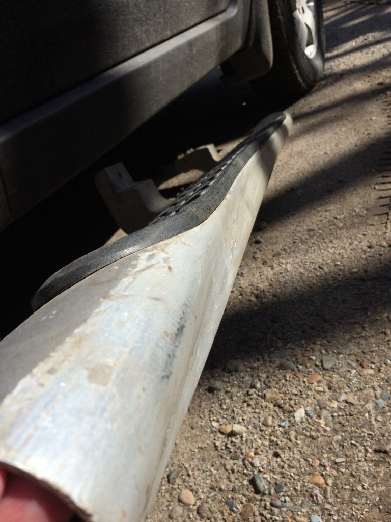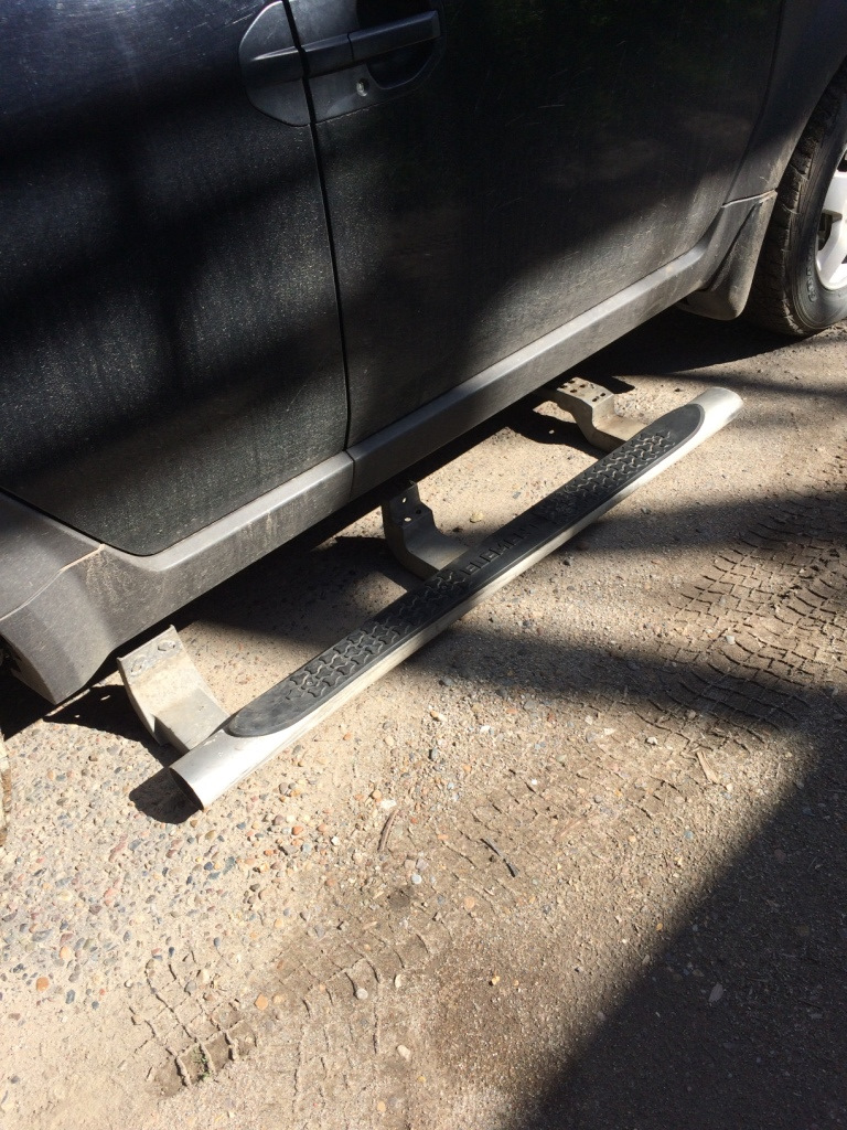 Продавец сказал, что подножки уделаны в гудроне (битуме), одну он оттёр, вторая осталась. Снял со своей машины перед продажей авто.