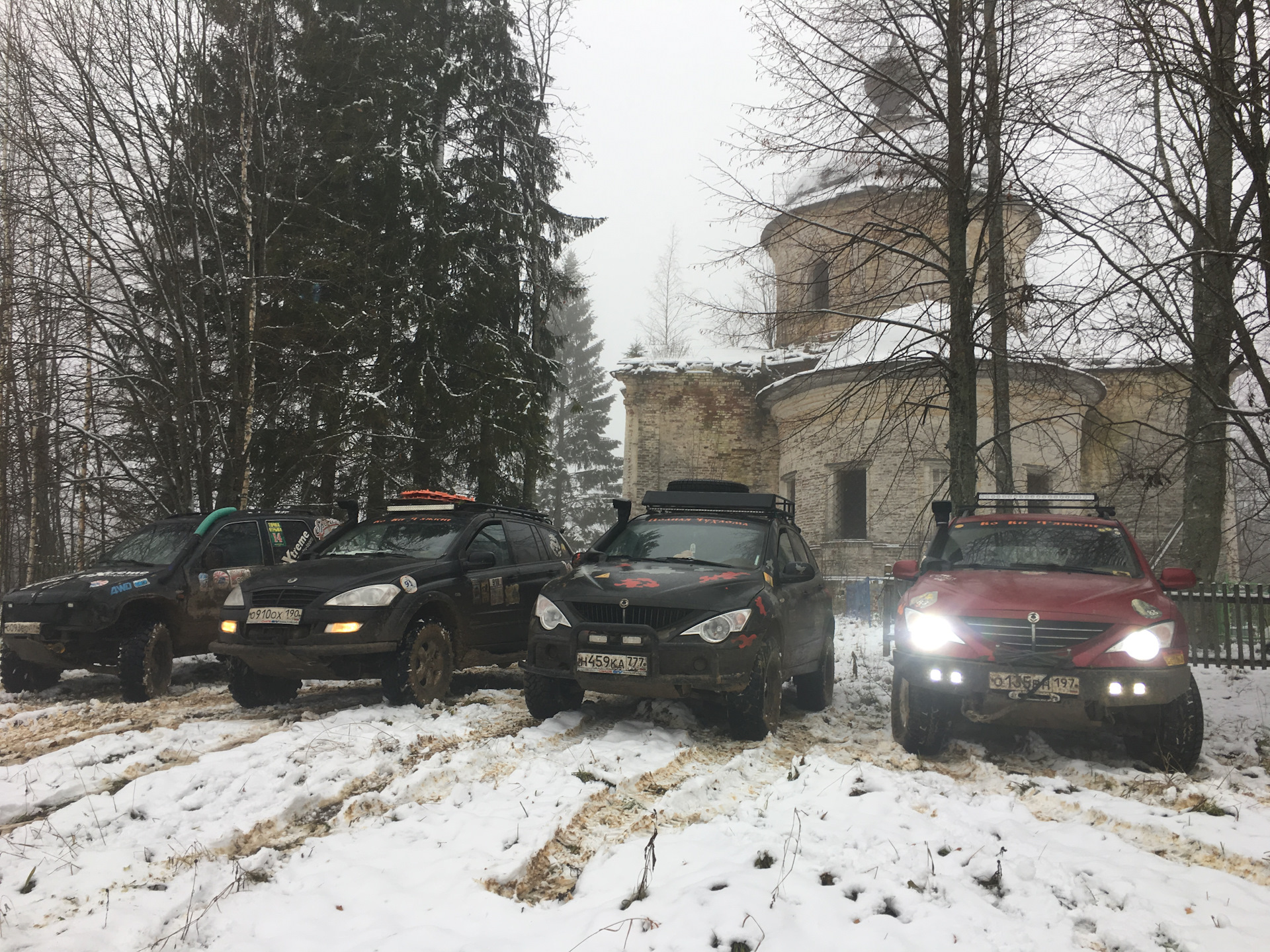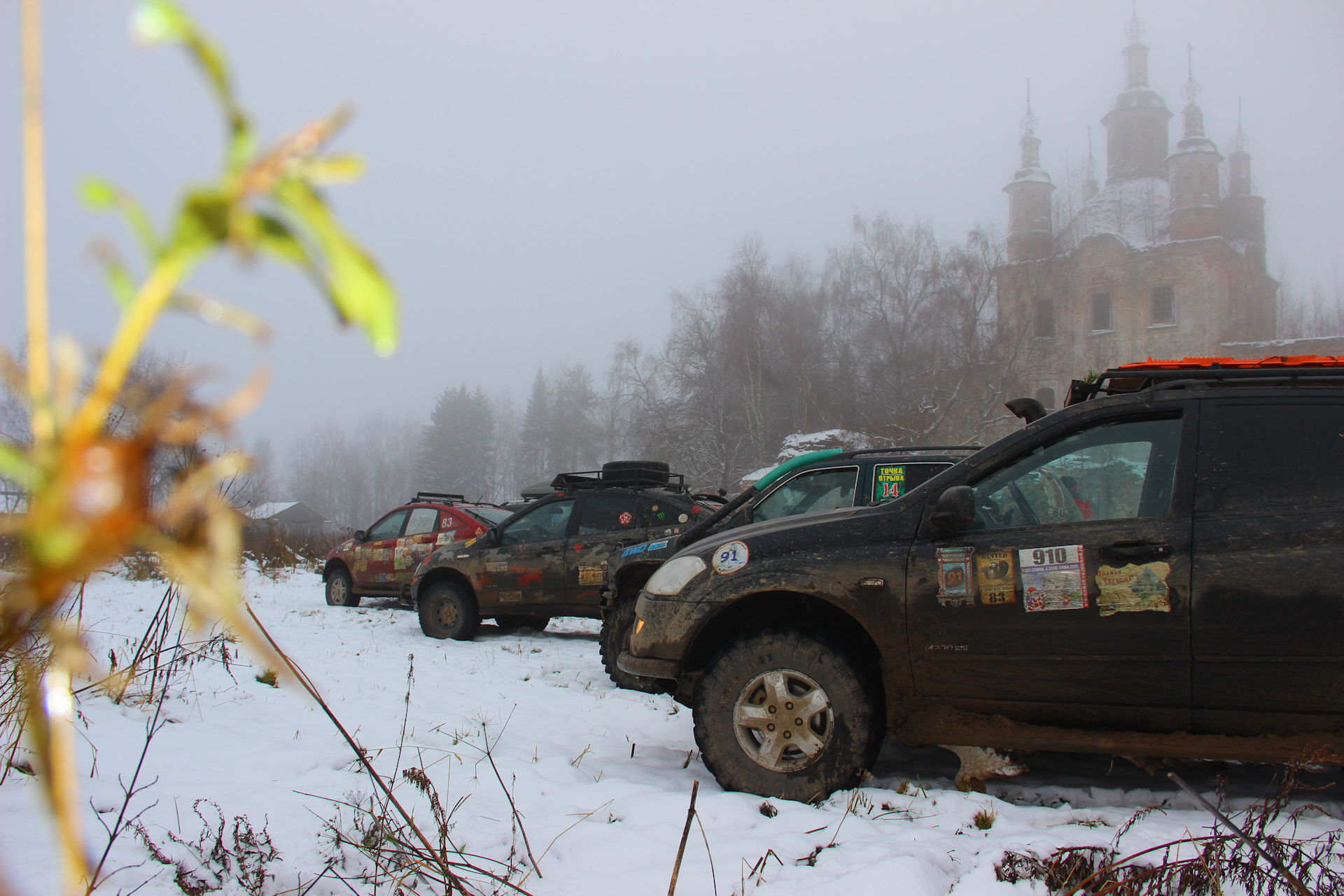 За все три ходовых дня мы посетили более 20 объектов, поучаствовали в мероприятии ОРГов по возвращению имен заброшенным и оставленным памятникам, храмам, селам, проверили свои лебёдки в деле на всех 4х машинах, успели и совсем чу-чуть поругаться и помириться, и заехать в гости к местным, хотели похвастаться какие у нас крутые внедорожники, да не тут то было… Аркаша не спрятался за монстрами, а поставлен специально для сравнения!
