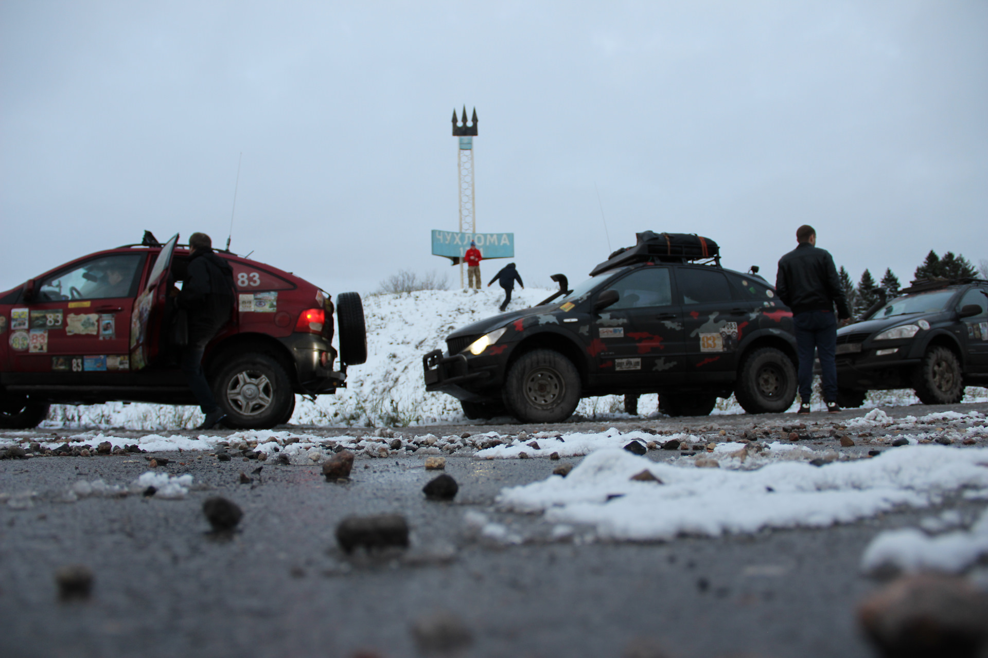 Команда наша состояла в основном из участников Автомобильного клуба Ssangyong плюс самый настоящий бард, которого я специально пригласил приехать из Пензы и поучаствовать в интересном приключении, ну и занять все вечера, развлекая нас песнями, анекдотами и ещё раз песнями. И да — у него это очень хорошо получилось. Можно конечно Максу (да, барда звали Максим и да он реально из Пензы) припомнить что на 4 день он пытался от нас спрятаться, или на 2й ходовой день не захотел садиться в машину а хотел пройти маршрут по грязи пешком, но это мелочи — я ему всё припомню ещё не раз.
