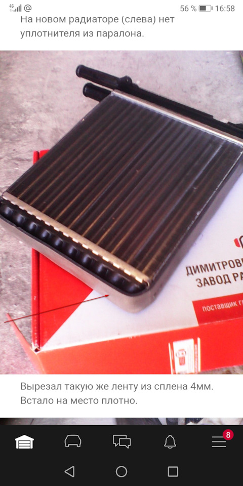 На днях потек радиатор печки. Вчера был куплен и установлен новый радиатор ДААЗ. Погода благоволила, +8*.
